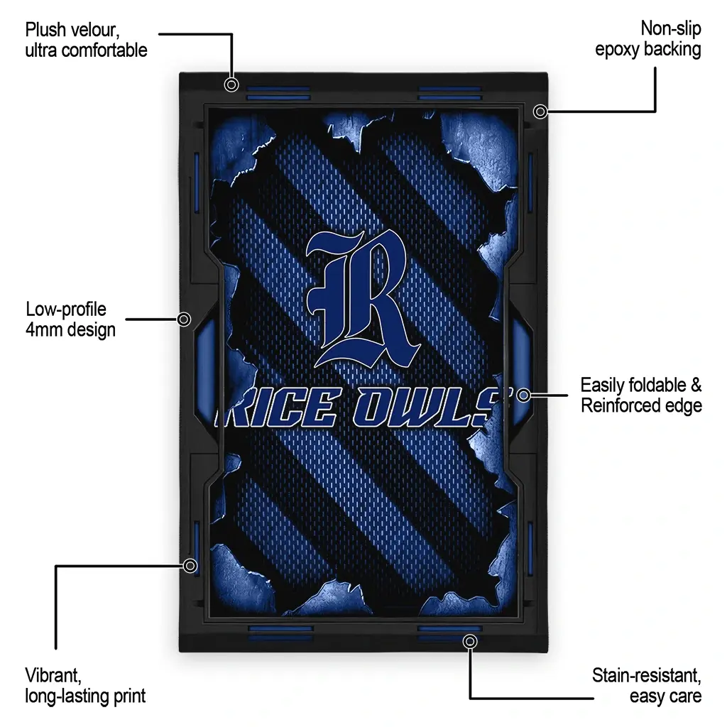 Hit a home run with your favorite team by displaying the Rice Owls Rug – Personalized Torn Mesh Navy Blue from MLB Fan Zone. Featuring a bold team design and crafted with plush velour, this durable sports rug offers ultimate comfort for your home or game-day fan cave. With a quality non-slip grip and stay-flat design, it’s the perfect accessory for any die-hard fan ready to rep their team from the living room to the clubhouse.