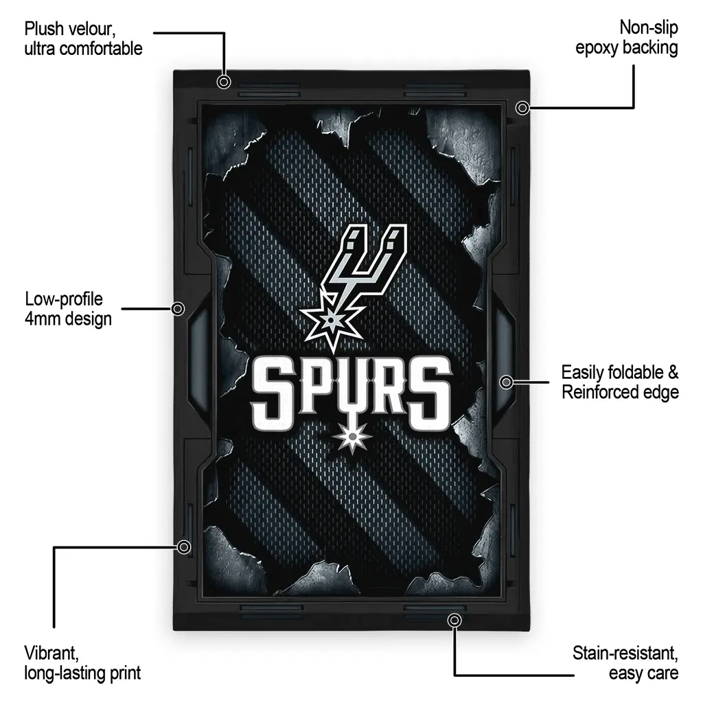 Hit a home run with your favorite team by displaying the San Antonio Spurs Rug – Personalized Torn Mesh Silver from MLB Fan Zone. Featuring a bold team design and crafted with plush velour, this durable sports rug offers ultimate comfort for your home or game-day fan cave. With a quality non-slip grip and stay-flat design, it’s the perfect accessory for any die-hard fan ready to rep their team from the living room to the clubhouse.