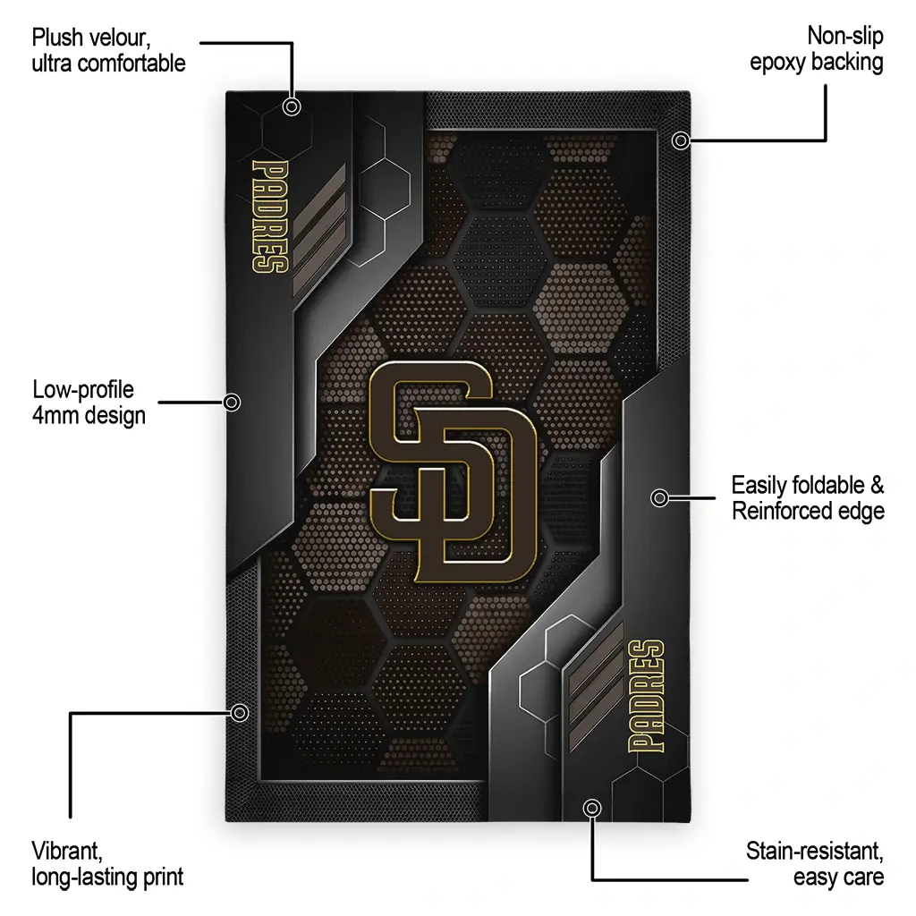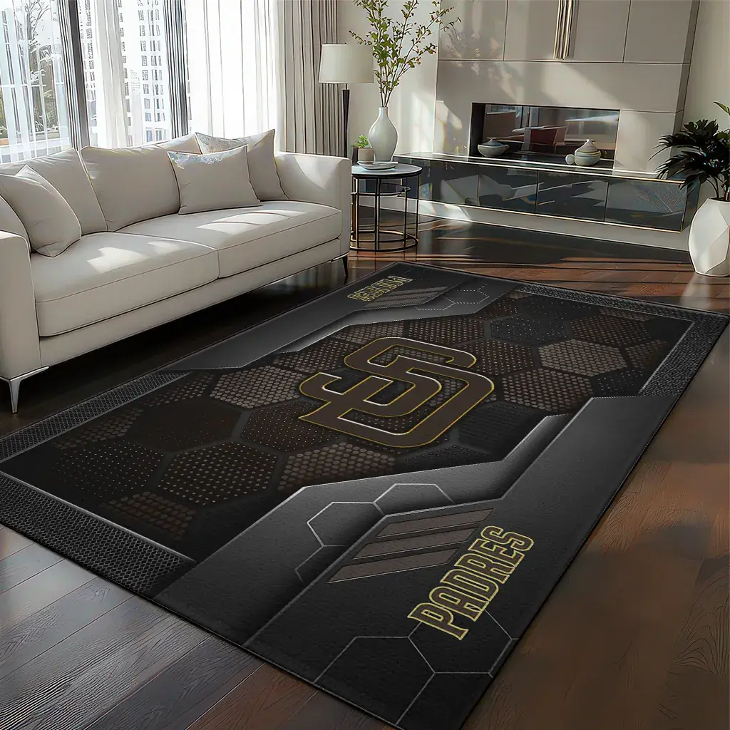 Hit a home run with your favorite team by displaying the San Diego Padres Rug – Customized Hexagonal Grid Pattern Brown from MLB Fan Zone. Featuring a bold team design and crafted with plush velour, this durable sports rug offers ultimate comfort for your home or game-day fan cave. With a quality non-slip grip and stay-flat design, it’s the perfect accessory for any die-hard fan ready to rep their team from the living room to the clubhouse.