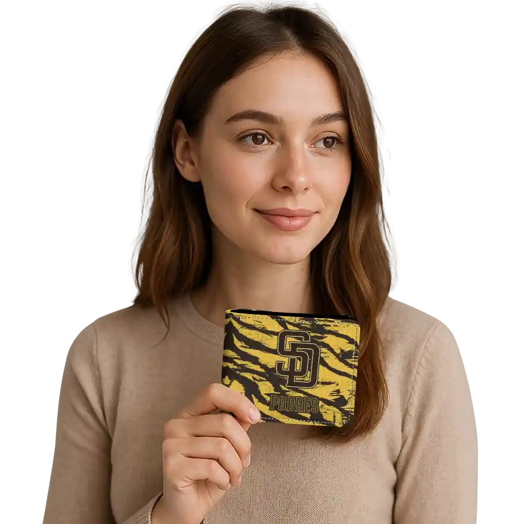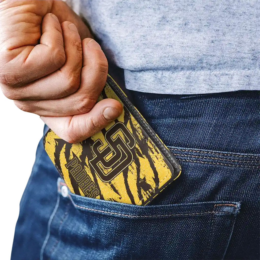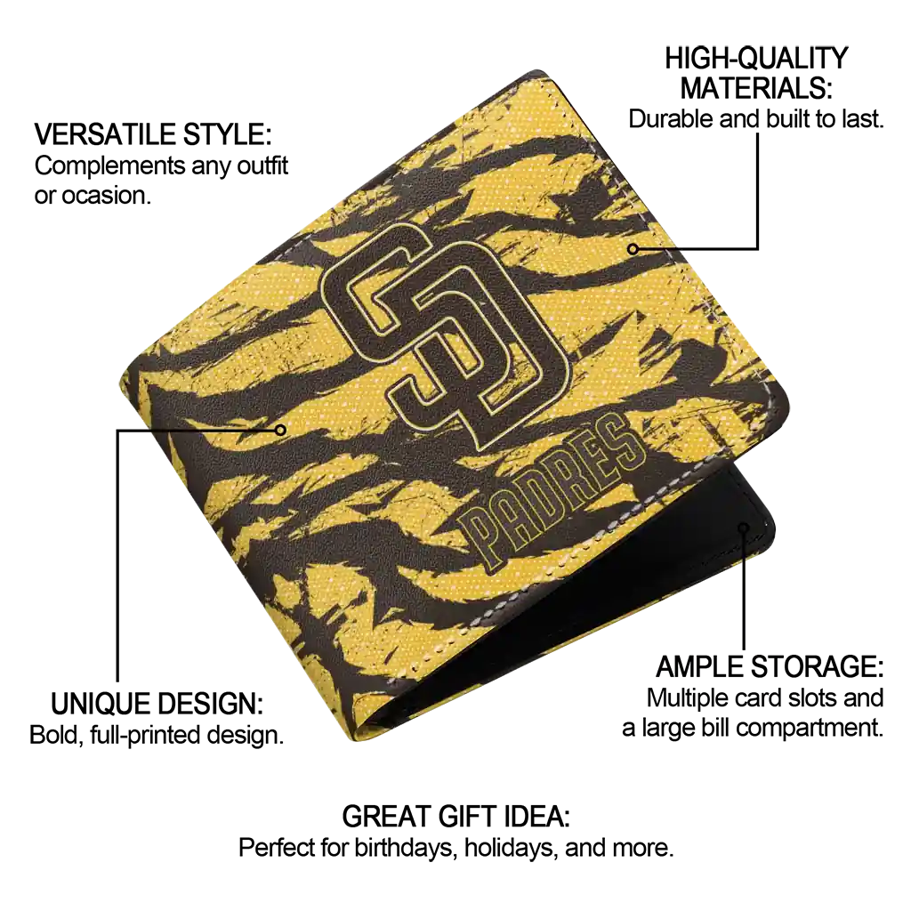 Hit a home run with San Diego Padres by wearing the San Diego Padres Abstract Stripes Brown Wallet. Featuring a bold team design and crafted with premium materials, this durable sports wallet offers plenty of space for your cards, cash, and game-day essentials. With a secure fold-over closure, it’s the perfect accessory for any die-hard fan ready to rep their team, from the dugout to the streets.