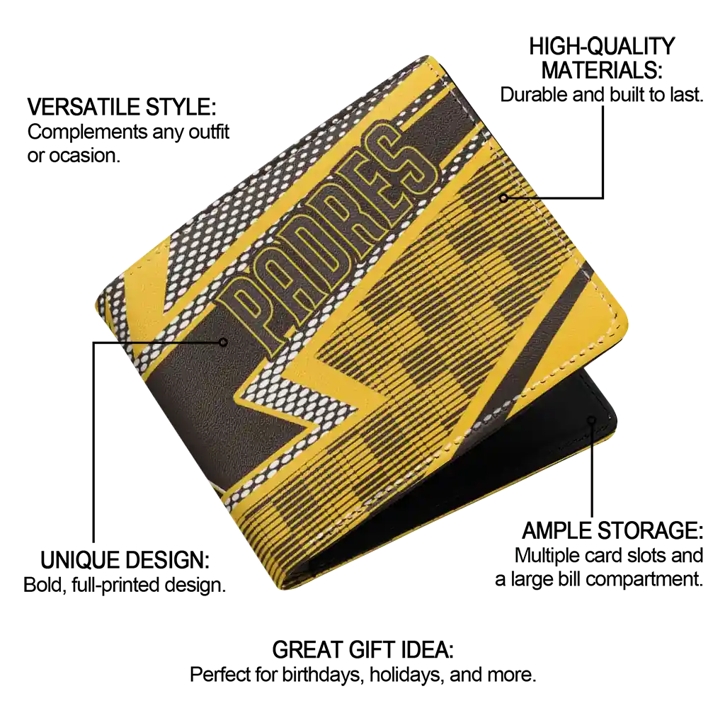 Hit a home run with San Diego Padres by wearing the San Diego Padres Arrow Mesh Brown Wallet. Featuring a bold team design and crafted with premium materials, this durable sports wallet offers plenty of space for your cards, cash, and game-day essentials. With a secure fold-over closure, it’s the perfect accessory for any die-hard fan ready to rep their team, from the dugout to the streets.