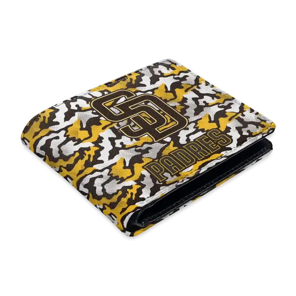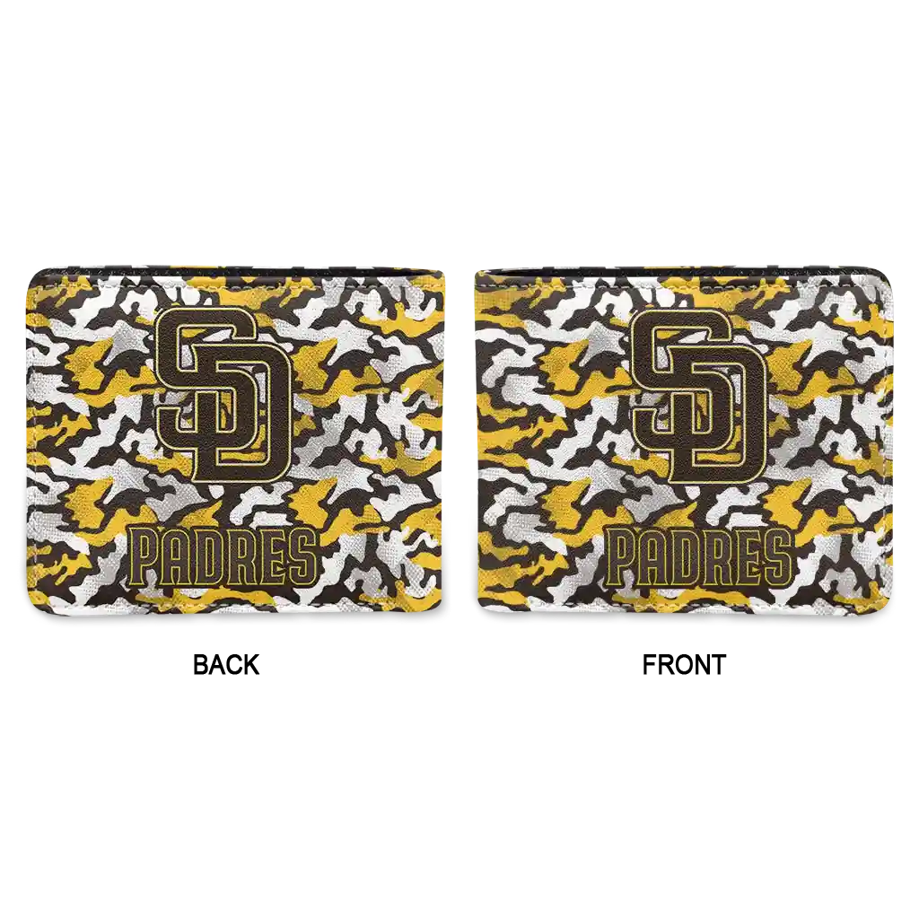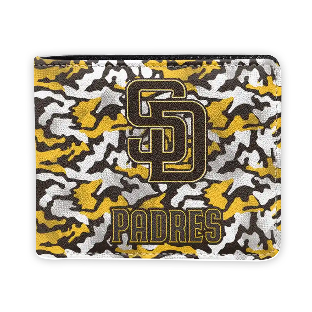 Hit a home run with San Diego Padres by wearing the San Diego Padres Camouflage Patches Brown White Wallet. Featuring a bold team design and crafted with premium materials, this durable sports wallet offers plenty of space for your cards, cash, and game-day essentials. With a secure fold-over closure, it’s the perfect accessory for any die-hard fan ready to rep their team, from the dugout to the streets.