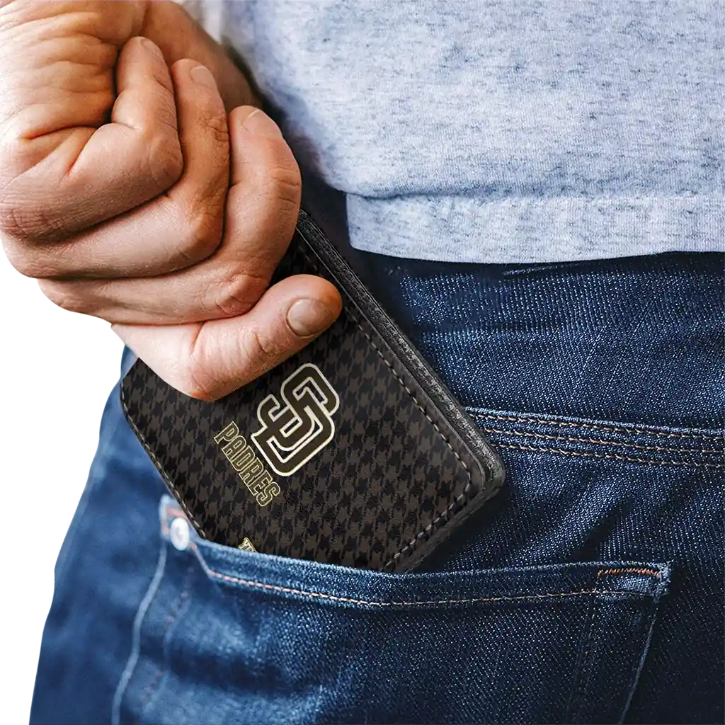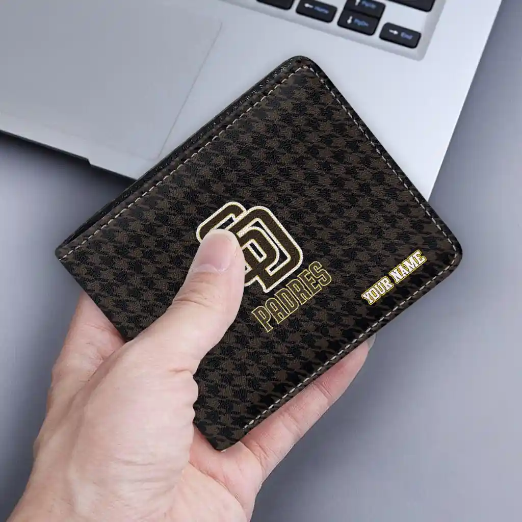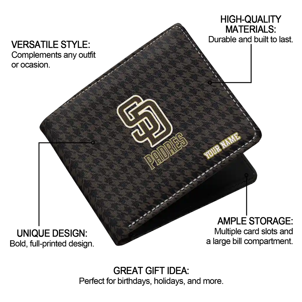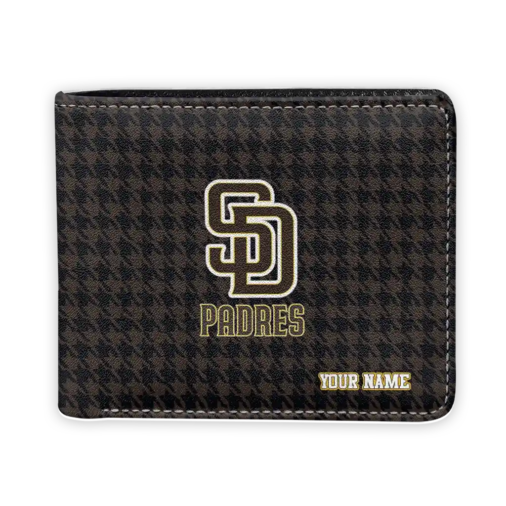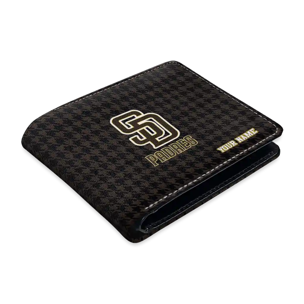 Hit a home run with San Diego Padres by wearing the Customized San Diego Padres Classic Houndstooth Brown Wallet. Featuring a bold team design and crafted with premium materials, this durable sports wallet offers plenty of space for your cards, cash, and game-day essentials. With a secure fold-over closure, it’s the perfect accessory for any die-hard fan ready to rep their team, from the dugout to the streets.