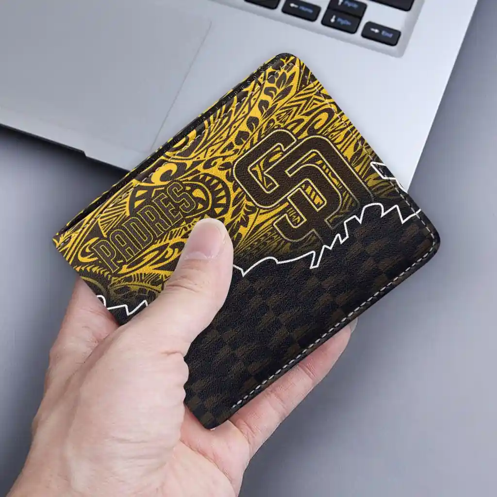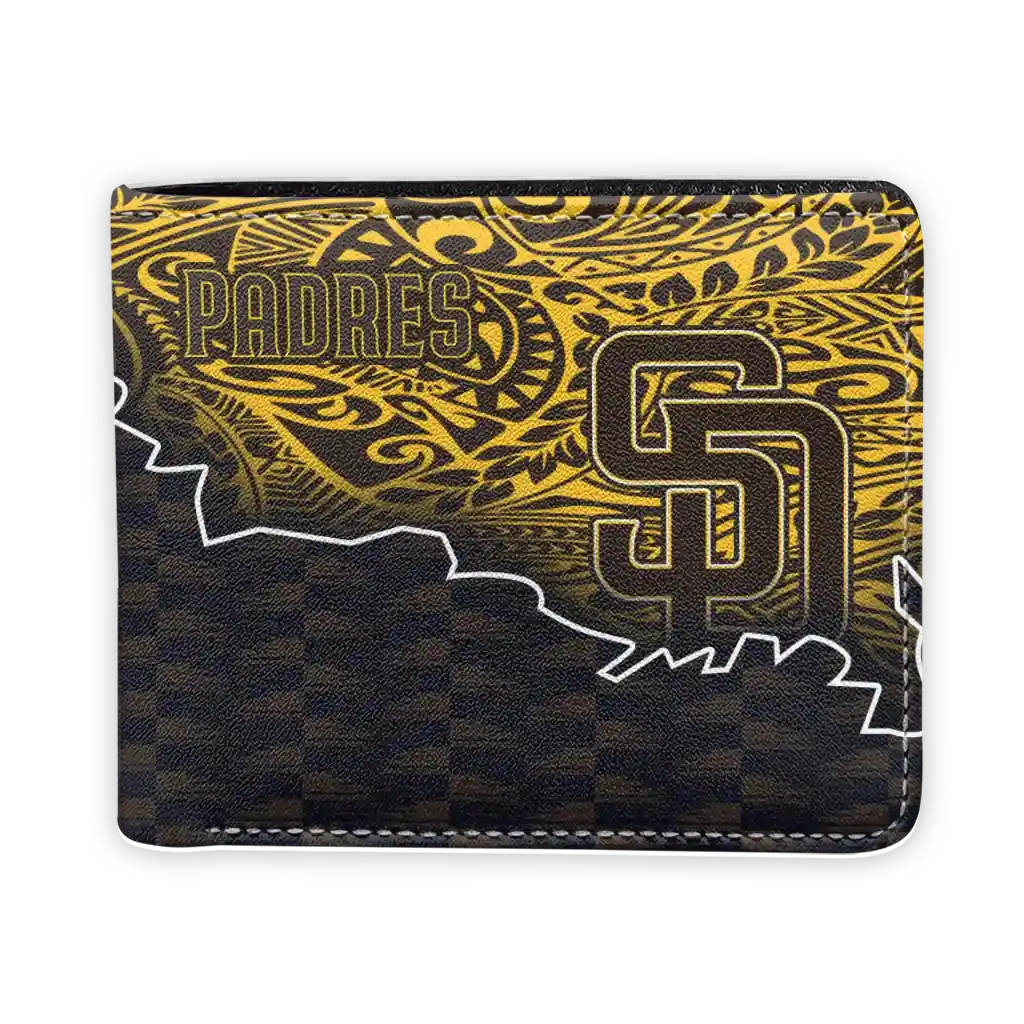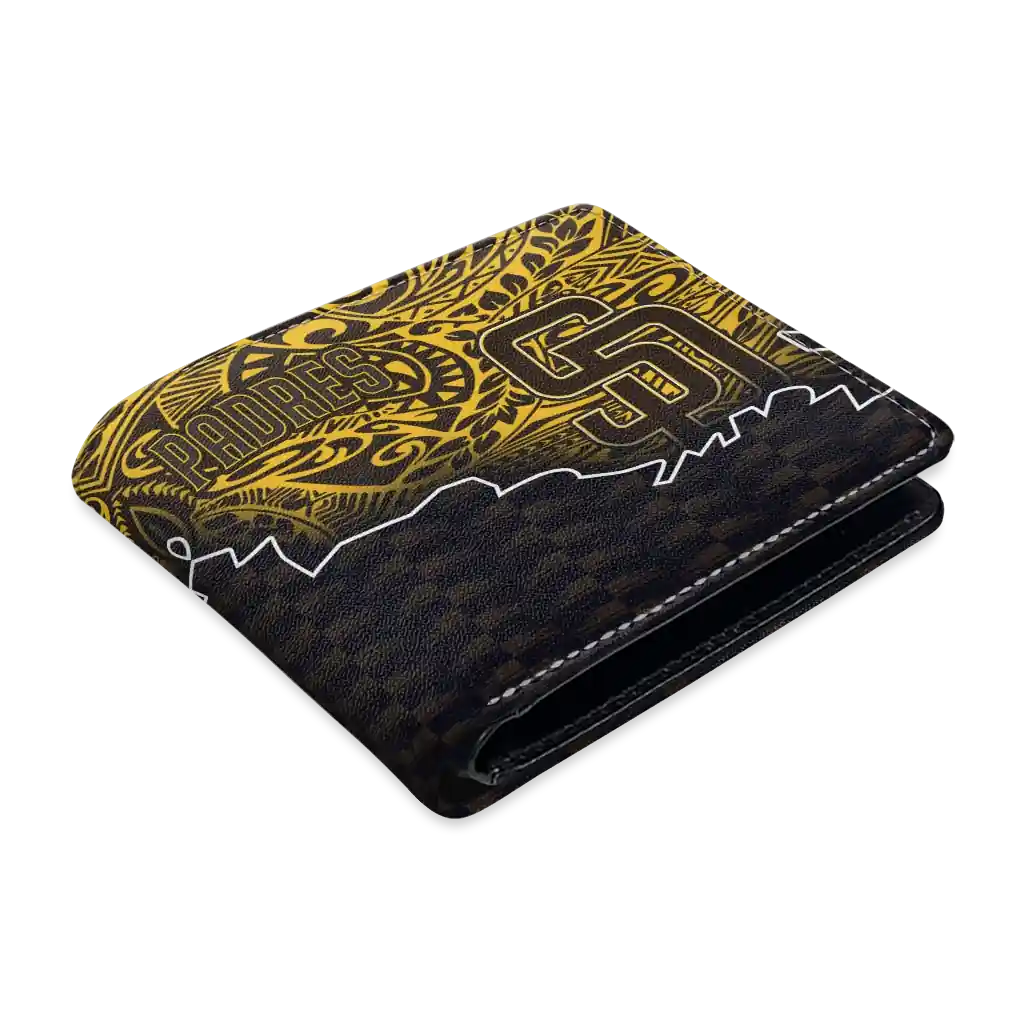 Hit a home run with San Diego Padres by wearing the San Diego Padres Tribal Fade Fusion Brown Black Wallet. Featuring a bold team design and crafted with premium materials, this durable sports wallet offers plenty of space for your cards, cash, and game-day essentials. With a secure fold-over closure, it’s the perfect accessory for any die-hard fan ready to rep their team, from the dugout to the streets.