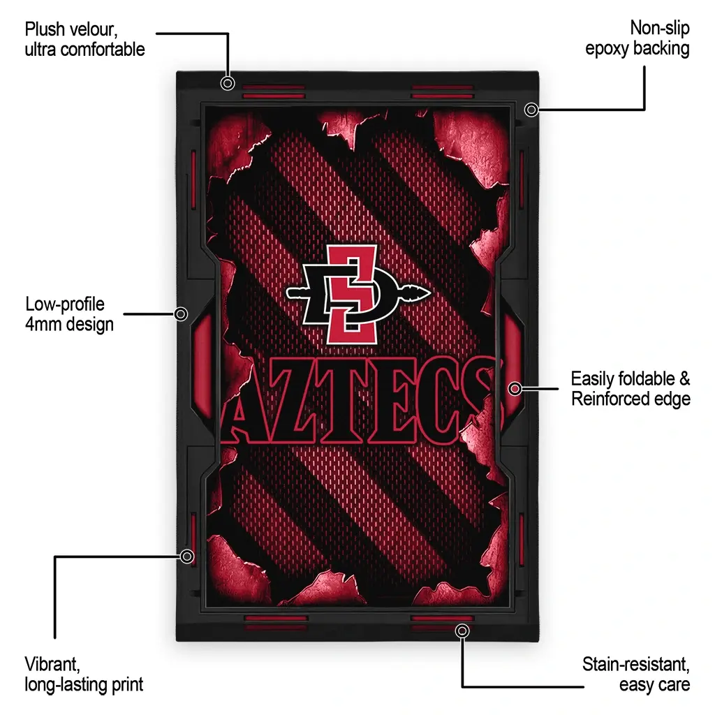 Hit a home run with your favorite team by displaying the San Diego State Aztecs Rug – Custom Torn Mesh Red from MLB Fan Zone. Featuring a bold team design and crafted with plush velour, this durable sports rug offers ultimate comfort for your home or game-day fan cave. With a quality non-slip grip and stay-flat design, it’s the perfect accessory for any die-hard fan ready to rep their team from the living room to the clubhouse.