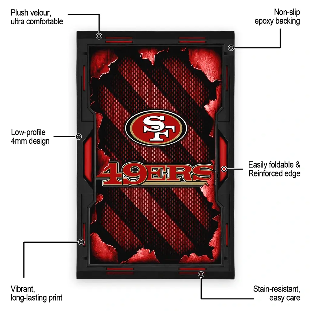 Hit a home run with your favorite team by displaying the San Francisco 49ers Rug – Custom Torn Mesh Red from MLB Fan Zone. Featuring a bold team design and crafted with plush velour, this durable sports rug offers ultimate comfort for your home or game-day fan cave. With a quality non-slip grip and stay-flat design, it’s the perfect accessory for any die-hard fan ready to rep their team from the living room to the clubhouse.