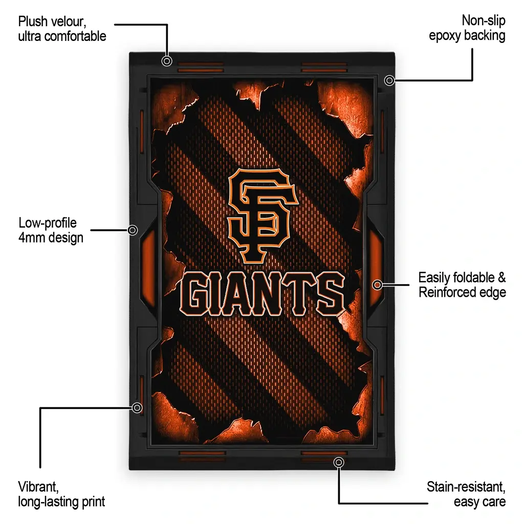 Hit a home run with your favorite team by displaying the San Francisco Giants Rug – Customized Torn Mesh Orange from MLB Fan Zone. Featuring a bold team design and crafted with plush velour, this durable sports rug offers ultimate comfort for your home or game-day fan cave. With a quality non-slip grip and stay-flat design, it’s the perfect accessory for any die-hard fan ready to rep their team from the living room to the clubhouse.