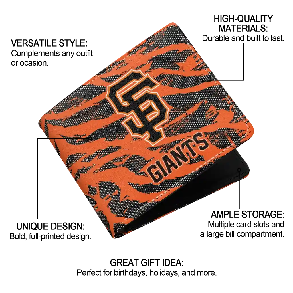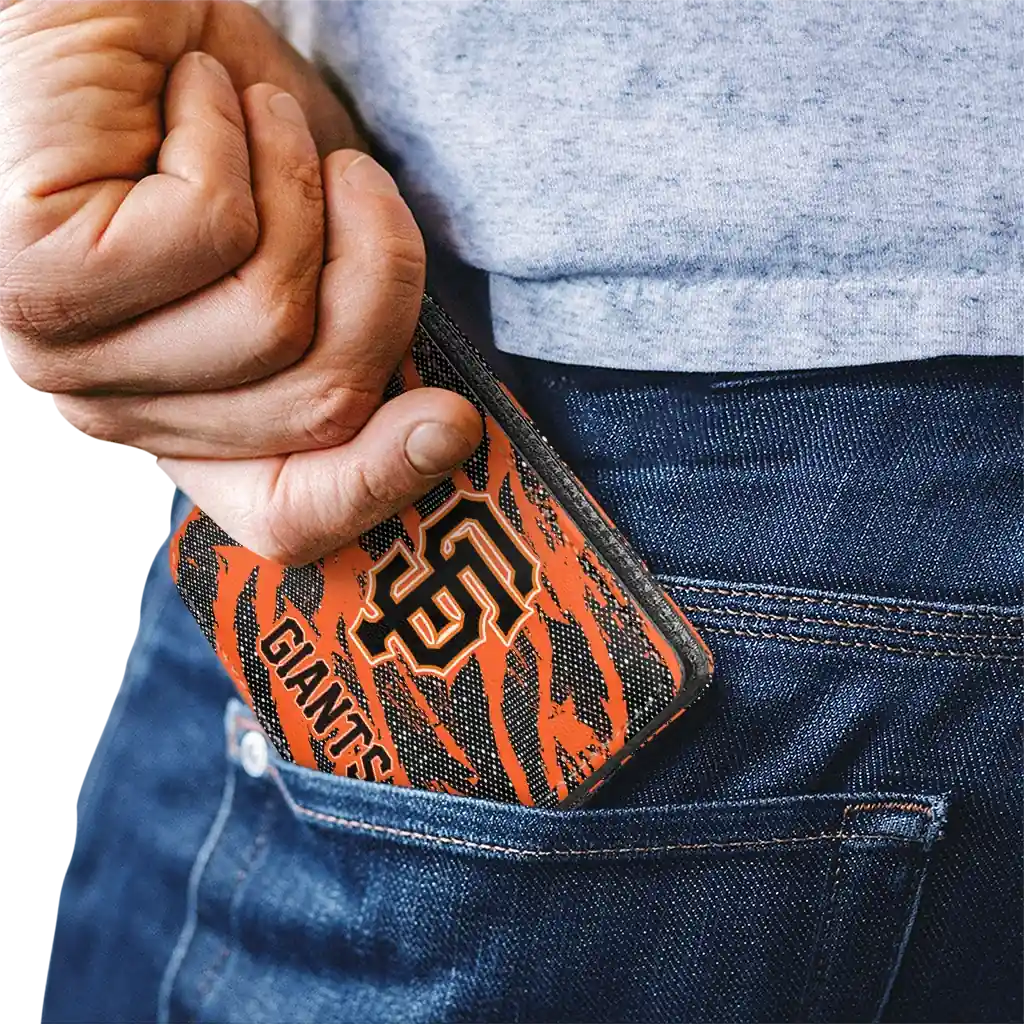 Hit a home run with San Francisco Giants by wearing the San Francisco Giants Abstract Stripes Orange Wallet. Featuring a bold team design and crafted with premium materials, this durable sports wallet offers plenty of space for your cards, cash, and game-day essentials. With a secure fold-over closure, it’s the perfect accessory for any die-hard fan ready to rep their team, from the dugout to the streets.