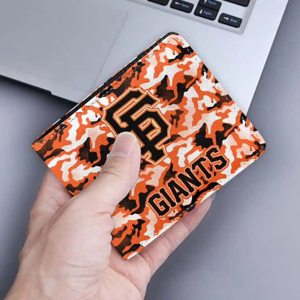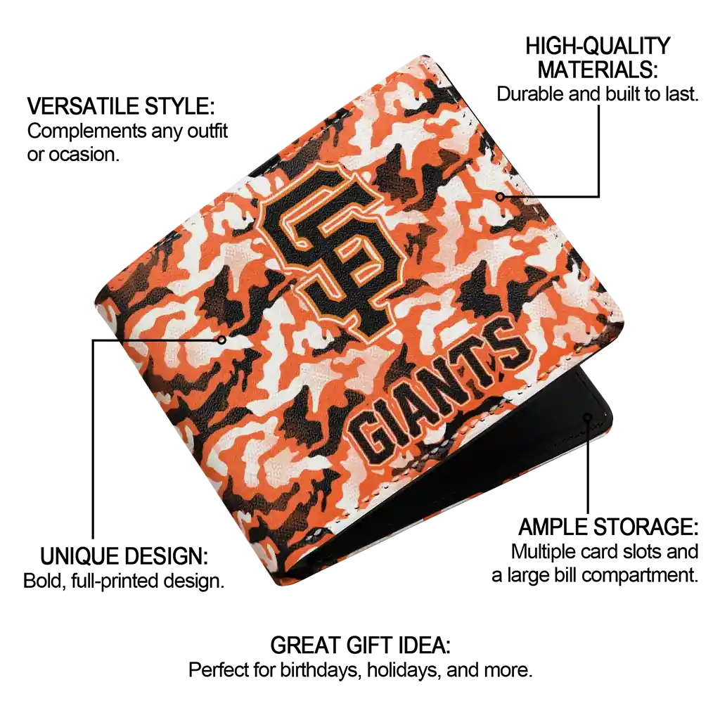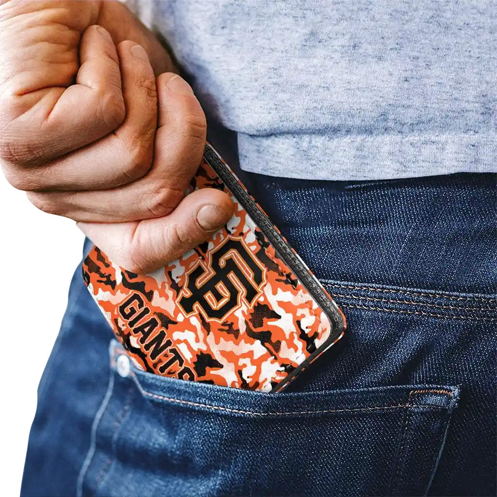 Hit a home run with San Francisco Giants by wearing the San Francisco Giants Camouflage Patches Orange White Wallet. Featuring a bold team design and crafted with premium materials, this durable sports wallet offers plenty of space for your cards, cash, and game-day essentials. With a secure fold-over closure, it’s the perfect accessory for any die-hard fan ready to rep their team, from the dugout to the streets.