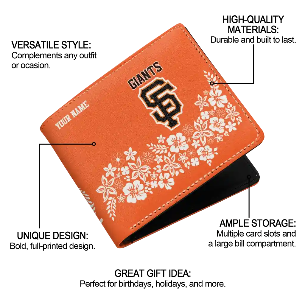 Hit a home run with San Francisco Giants by wearing the Customized San Francisco Giants Floral Cluster Orange White Wallet. Featuring a bold team design and crafted with premium materials, this durable sports wallet offers plenty of space for your cards, cash, and game-day essentials. With a secure fold-over closure, it’s the perfect accessory for any die-hard fan ready to rep their team, from the dugout to the streets.