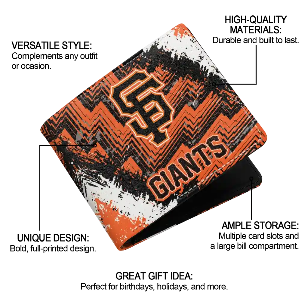 Hit a home run with San Francisco Giants by wearing the San Francisco Giants Orange White Wallet. Featuring a bold team design and crafted with premium materials, this durable sports wallet offers plenty of space for your cards, cash, and game-day essentials. With a secure fold-over closure, it’s the perfect accessory for any die-hard fan ready to rep their team, from the dugout to the streets.
