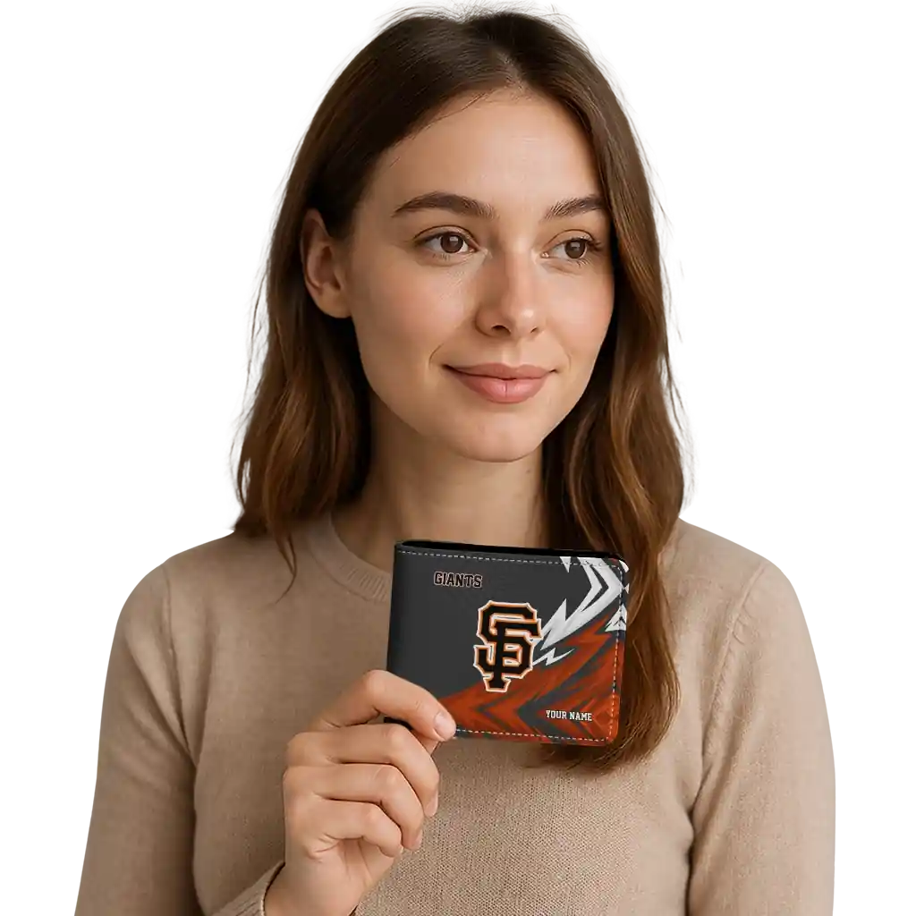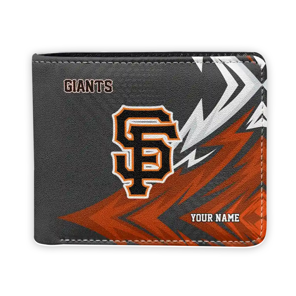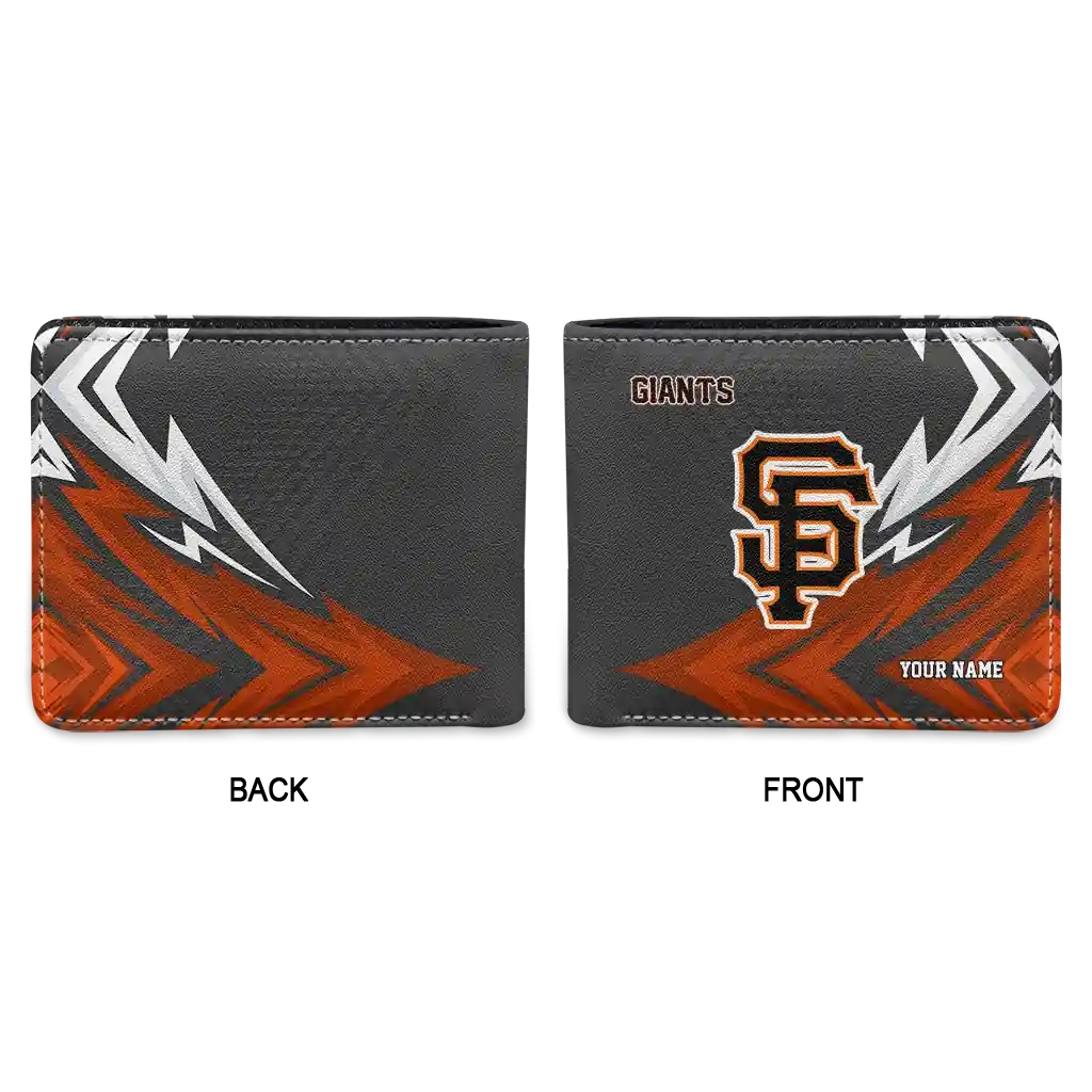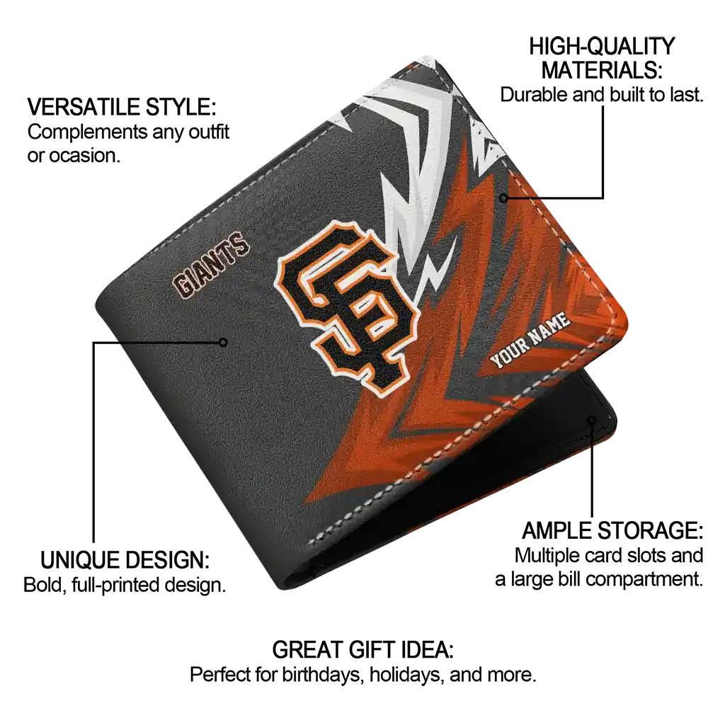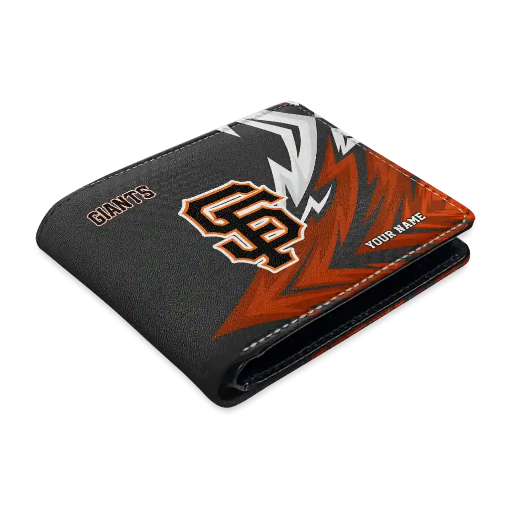 Hit a home run with San Francisco Giants by wearing the Personalized San Francisco Giants Sharp Arrow Streaks Orange Black Wallet. Featuring a bold team design and crafted with premium materials, this durable sports wallet offers plenty of space for your cards, cash, and game-day essentials. With a secure fold-over closure, it’s the perfect accessory for any die-hard fan ready to rep their team, from the dugout to the streets.