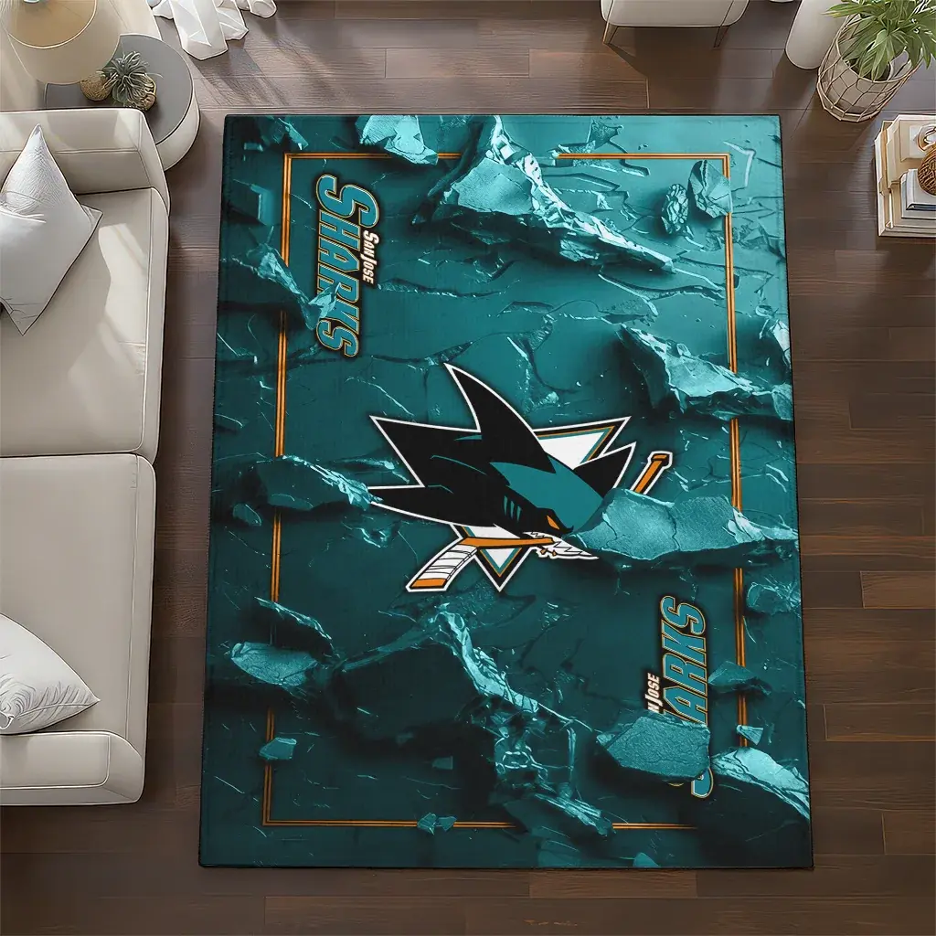 San Jose Sharks Rug – Cracked Surface Design Teal