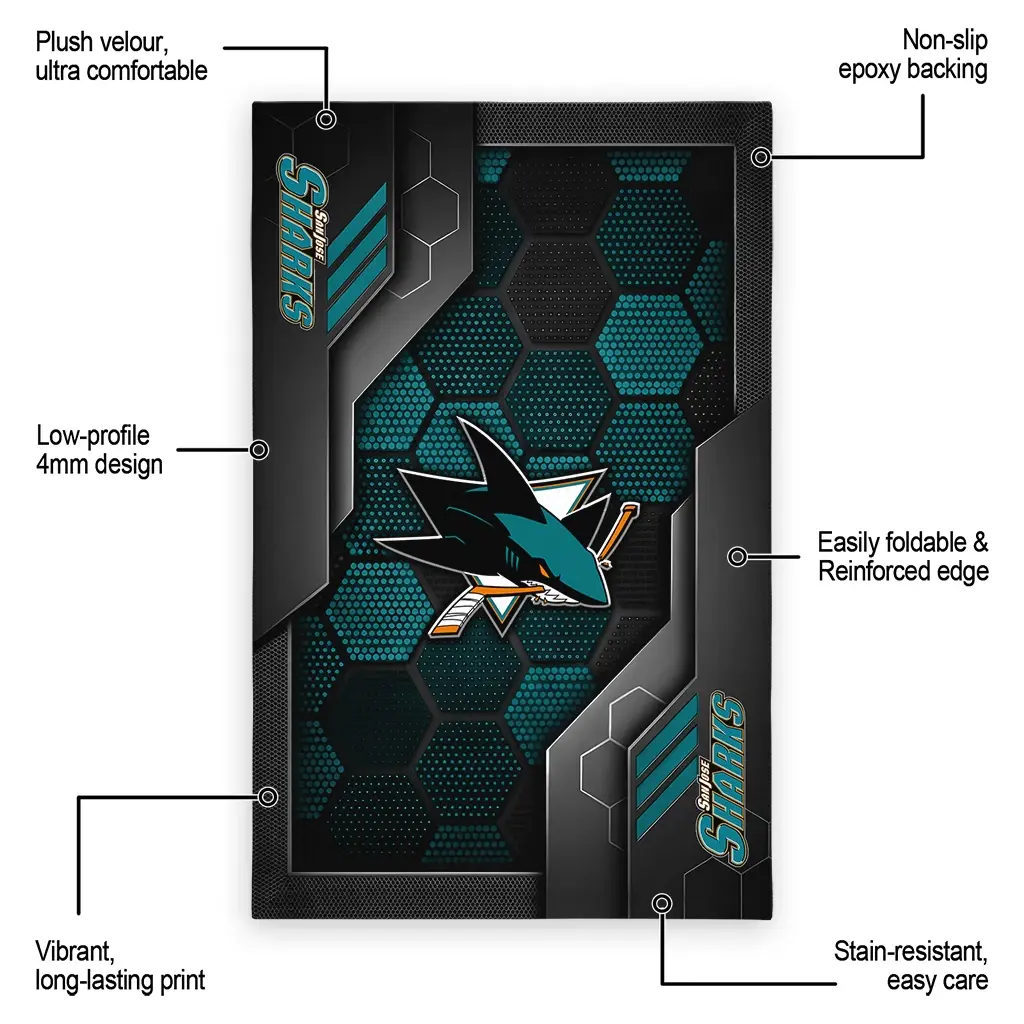 San Jose Sharks Rug – Hexagonal Grid Pattern Teal