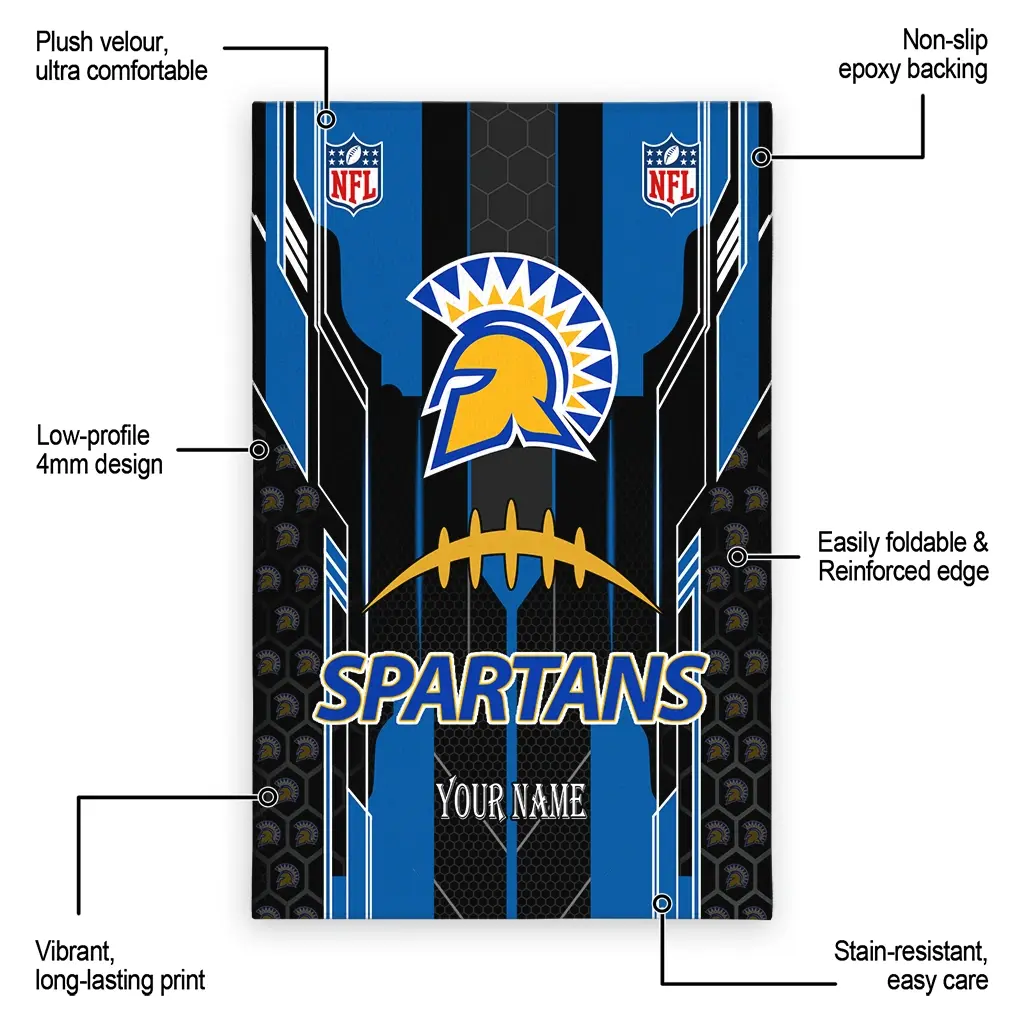 Hit a home run with your favorite team by displaying the San Jose State Spartans Rug – Custom Football Laces Blue from MLB Fan Zone. Featuring a bold team design and crafted with plush velour, this durable sports rug offers ultimate comfort for your home or game-day fan cave. With a quality non-slip grip and stay-flat design, it’s the perfect accessory for any die-hard fan ready to rep their team from the living room to the clubhouse.