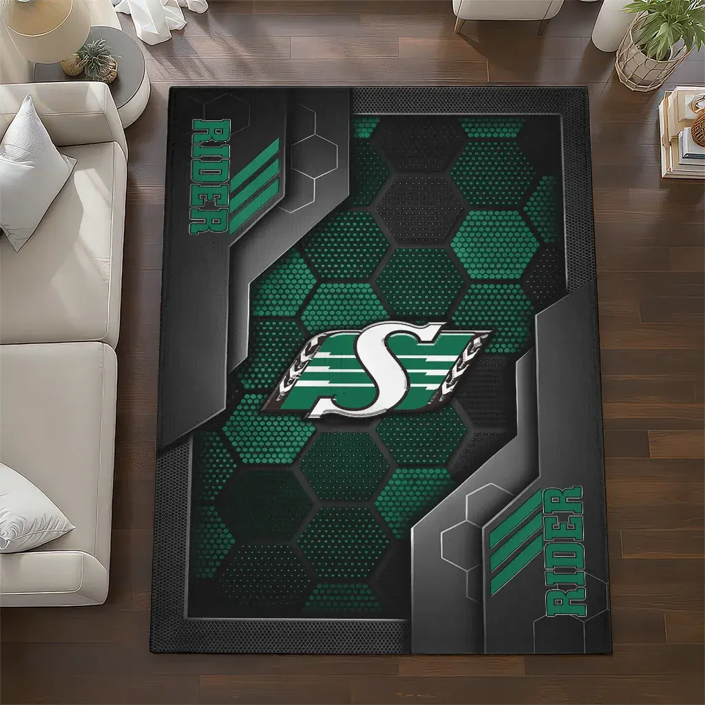 Saskatchewan Roughriders Rug – Hexagonal Grid Pattern Green