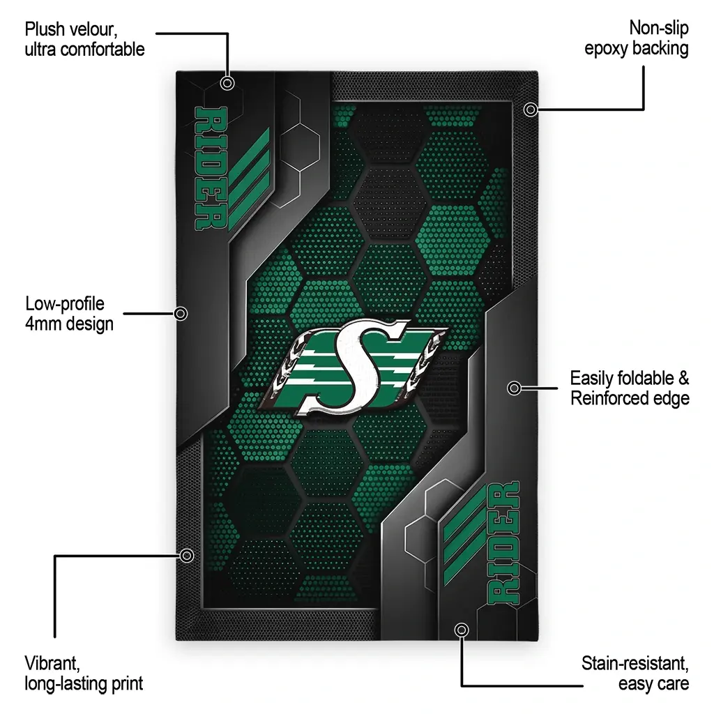 Hit a home run with your favorite team by displaying the Saskatchewan Roughriders Rug – Personalized Hexagonal Grid Pattern Green from MLB Fan Zone. Featuring a bold team design and crafted with plush velour, this durable sports rug offers ultimate comfort for your home or game-day fan cave. With a quality non-slip grip and stay-flat design, it’s the perfect accessory for any die-hard fan ready to rep their team from the living room to the clubhouse.
