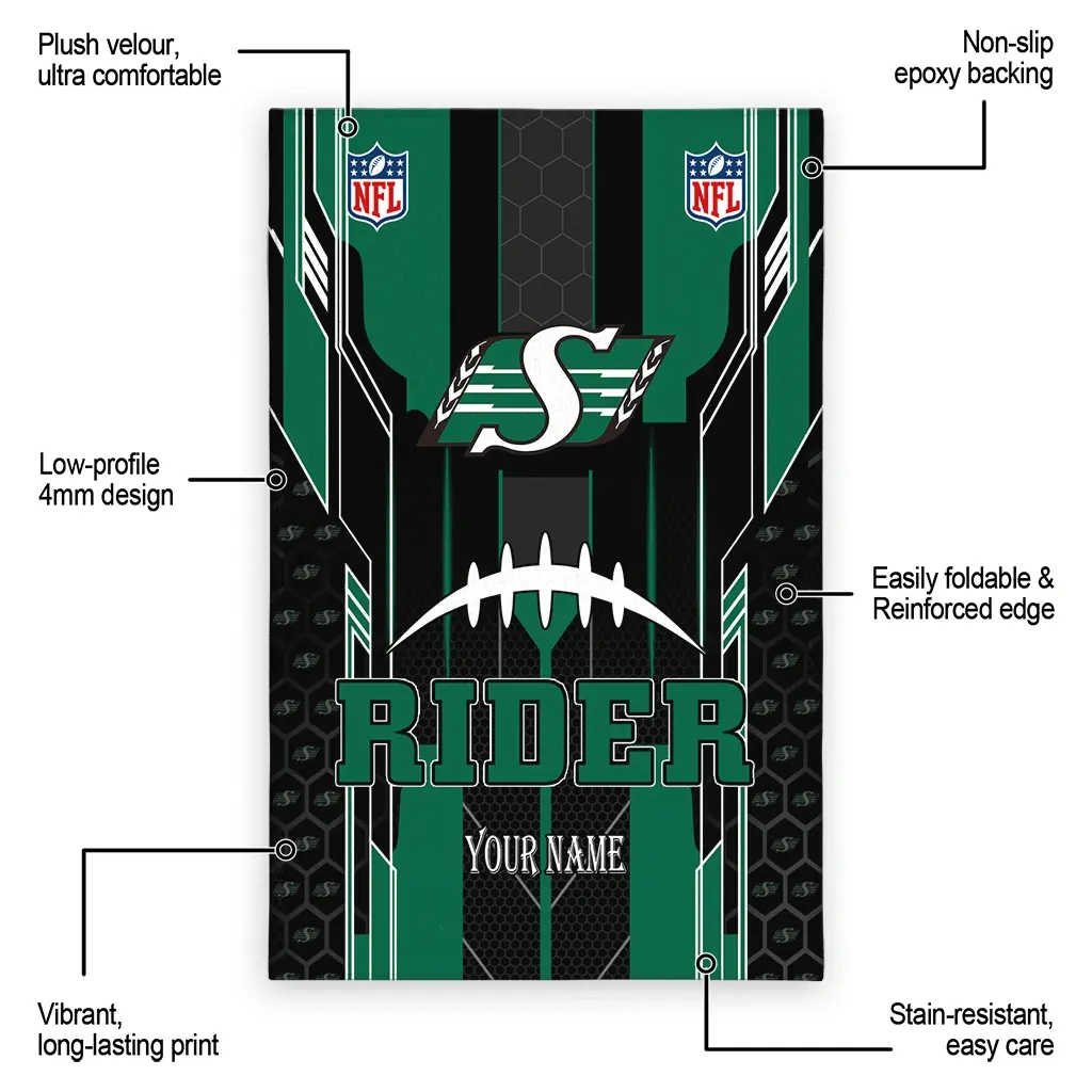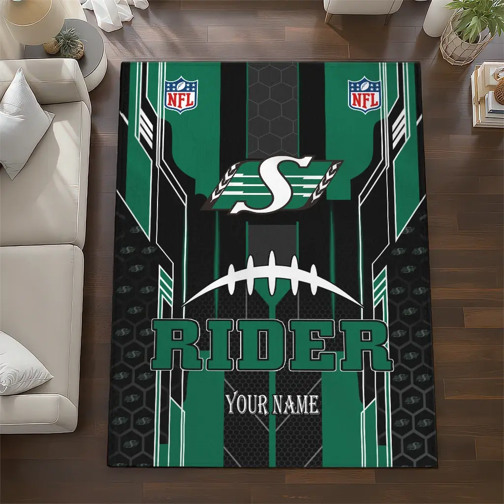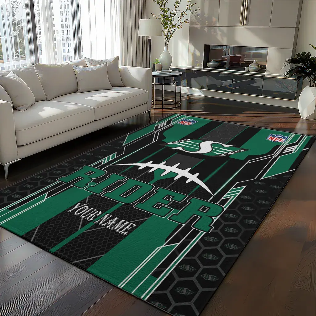 Hit a home run with your favorite team by displaying the Saskatchewan Roughriders Rug – Personalized Football Laces Green from MLB Fan Zone. Featuring a bold team design and crafted with plush velour, this durable sports rug offers ultimate comfort for your home or game-day fan cave. With a quality non-slip grip and stay-flat design, it’s the perfect accessory for any die-hard fan ready to rep their team from the living room to the clubhouse.