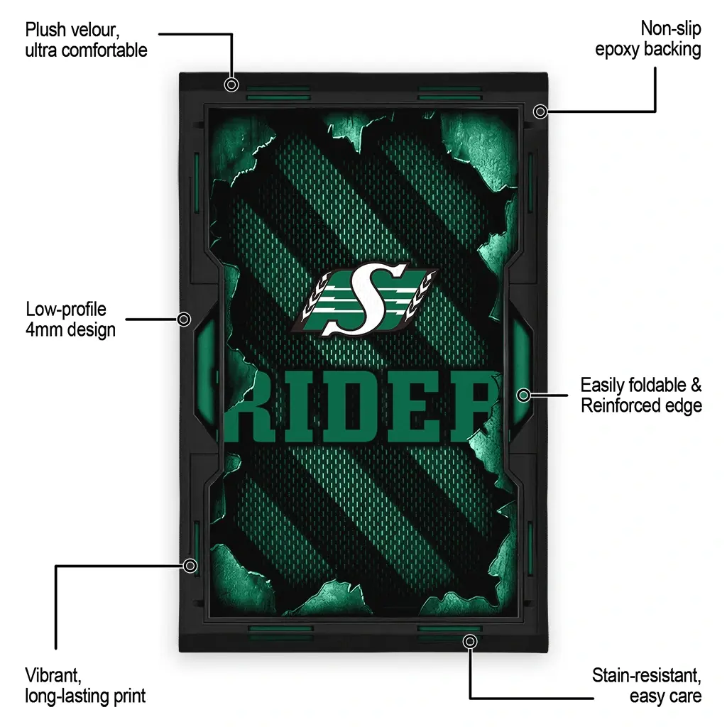 Hit a home run with your favorite team by displaying the Saskatchewan Roughriders Rug – Customized Torn Mesh Green from MLB Fan Zone. Featuring a bold team design and crafted with plush velour, this durable sports rug offers ultimate comfort for your home or game-day fan cave. With a quality non-slip grip and stay-flat design, it’s the perfect accessory for any die-hard fan ready to rep their team from the living room to the clubhouse.