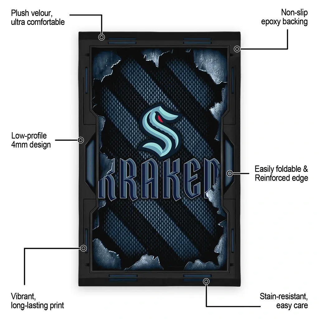 Hit a home run with your favorite team by displaying the Seattle Kraken Rug – Personalized Torn Mesh Blue from MLB Fan Zone. Featuring a bold team design and crafted with plush velour, this durable sports rug offers ultimate comfort for your home or game-day fan cave. With a quality non-slip grip and stay-flat design, it’s the perfect accessory for any die-hard fan ready to rep their team from the living room to the clubhouse.