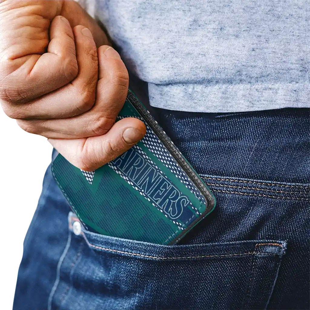 Hit a home run with Seattle Mariners by wearing the Seattle Mariners Arrow Mesh Navy Blue Wallet. Featuring a bold team design and crafted with premium materials, this durable sports wallet offers plenty of space for your cards, cash, and game-day essentials. With a secure fold-over closure, it’s the perfect accessory for any die-hard fan ready to rep their team, from the dugout to the streets.