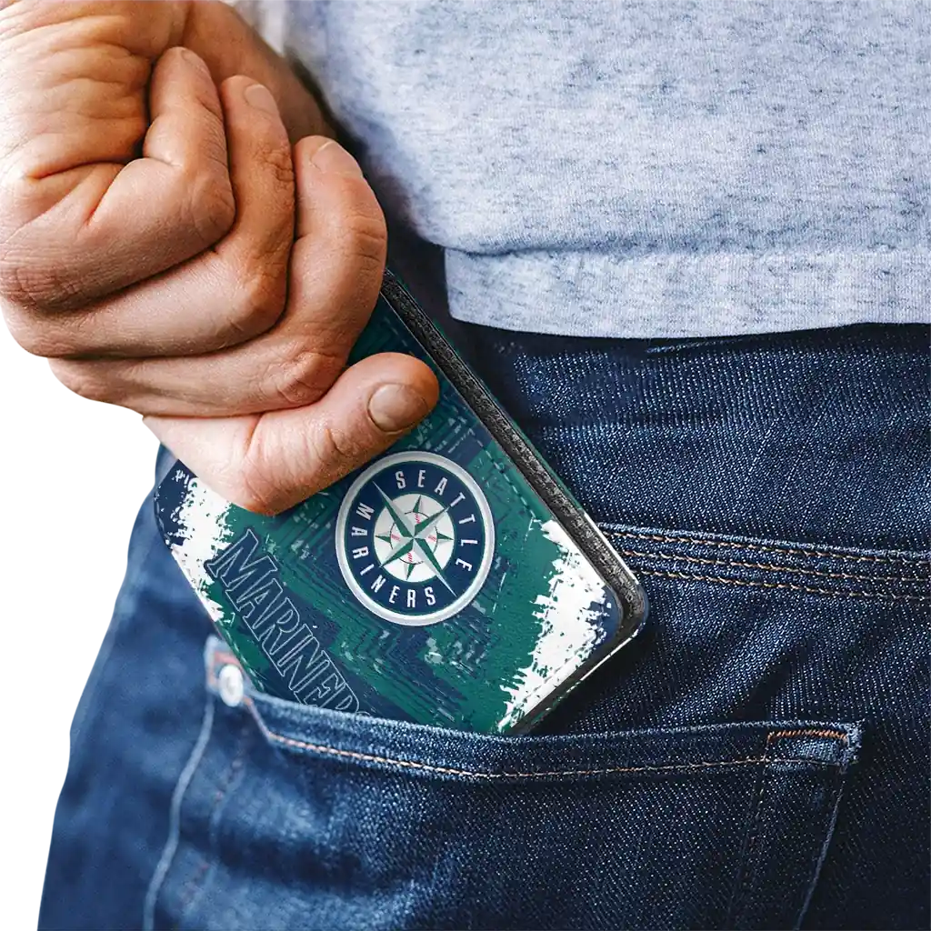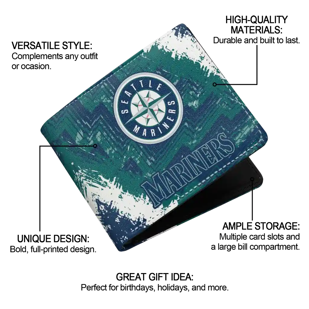 Hit a home run with Seattle Mariners by wearing the Seattle Mariners Navy Blue White Wallet. Featuring a bold team design and crafted with premium materials, this durable sports wallet offers plenty of space for your cards, cash, and game-day essentials. With a secure fold-over closure, it’s the perfect accessory for any die-hard fan ready to rep their team, from the dugout to the streets.