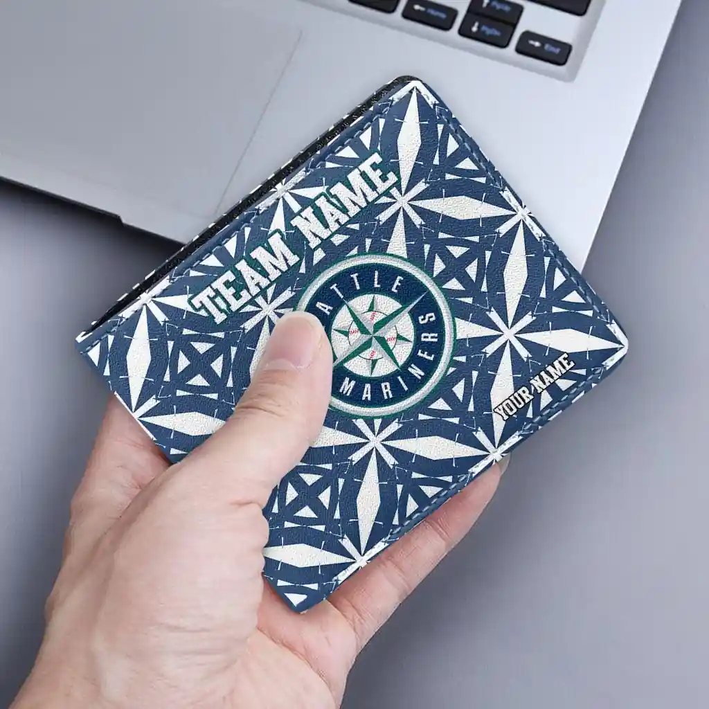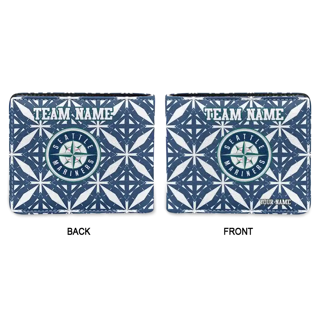 Hit a home run with Seattle Mariners by wearing the Customized Seattle Mariners Geometric Star Navy Blue White Wallet. Featuring a bold team design and crafted with premium materials, this durable sports wallet offers plenty of space for your cards, cash, and game-day essentials. With a secure fold-over closure, it’s the perfect accessory for any die-hard fan ready to rep their team, from the dugout to the streets.