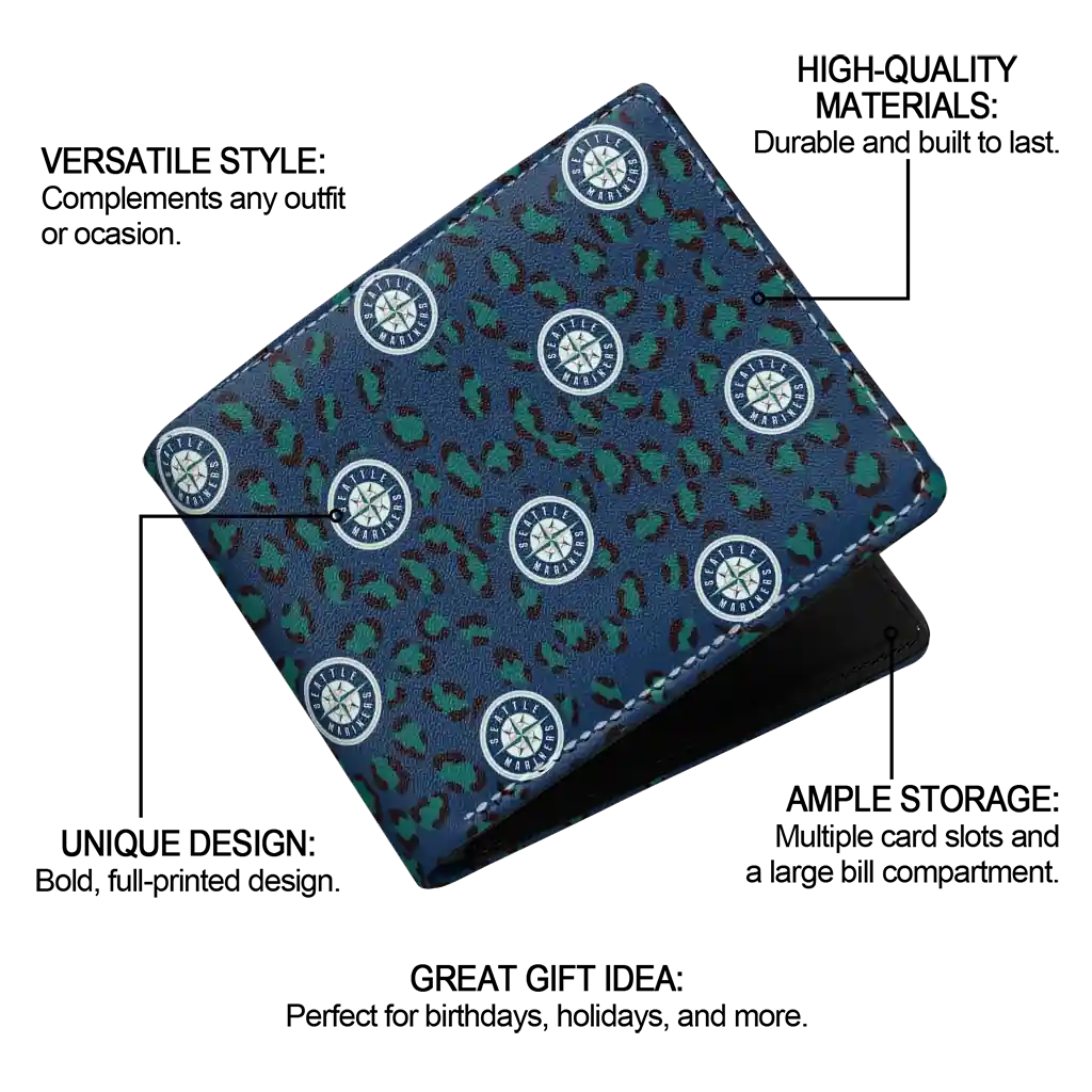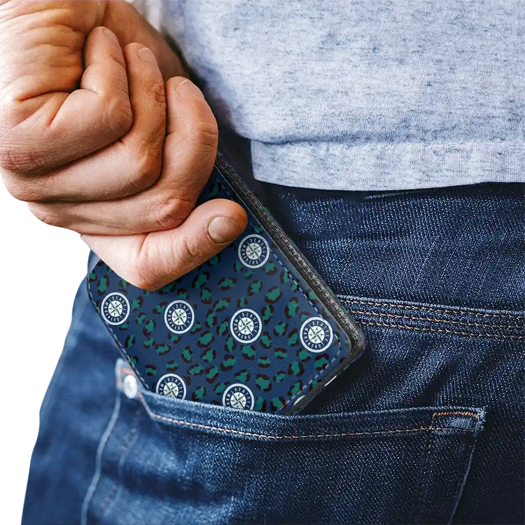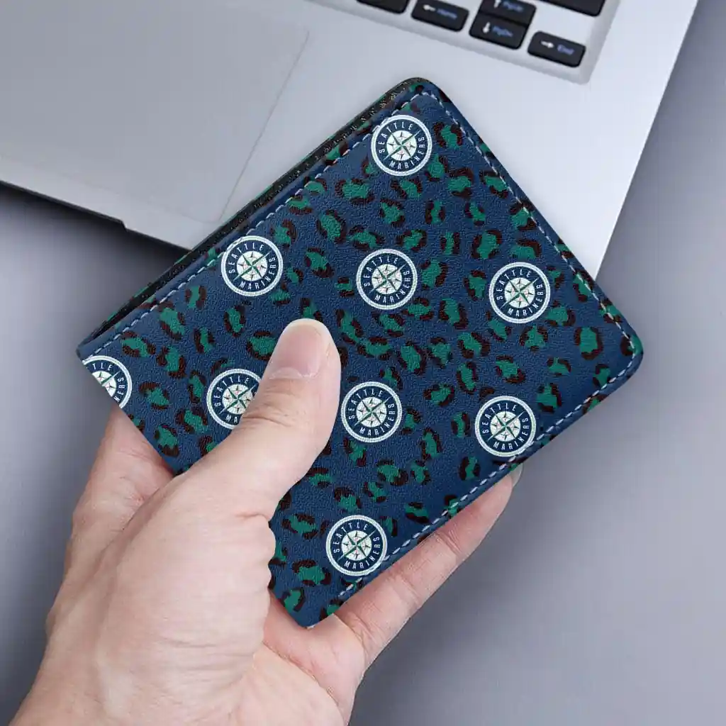 Hit a home run with Seattle Mariners by wearing the Seattle Mariners Leopard Texture Navy Blue Wallet. Featuring a bold team design and crafted with premium materials, this durable sports wallet offers plenty of space for your cards, cash, and game-day essentials. With a secure fold-over closure, it’s the perfect accessory for any die-hard fan ready to rep their team, from the dugout to the streets.