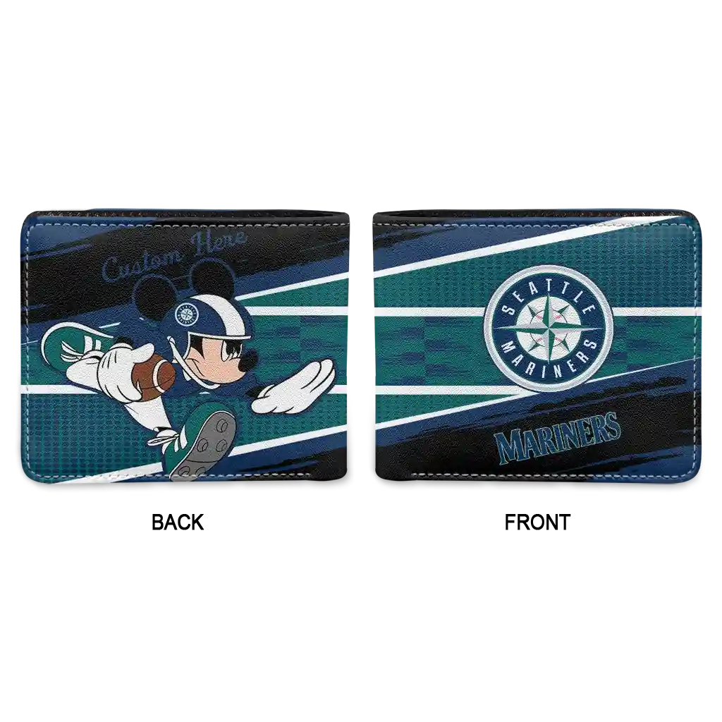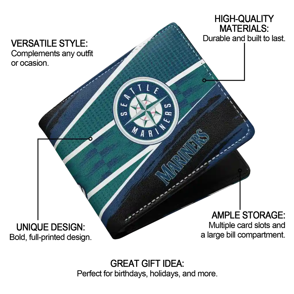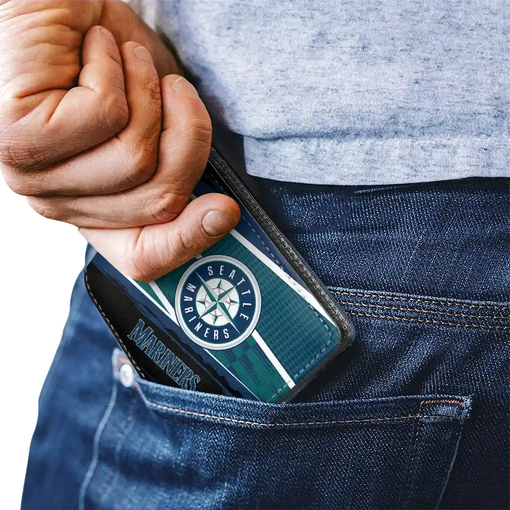 Hit a home run with Seattle Mariners by wearing the Personalized Seattle Mariners Checkerboard Brush Navy Blue Black Wallet. Featuring a bold team design and crafted with premium materials, this durable sports wallet offers plenty of space for your cards, cash, and game-day essentials. With a secure fold-over closure, it’s the perfect accessory for any die-hard fan ready to rep their team, from the dugout to the streets.