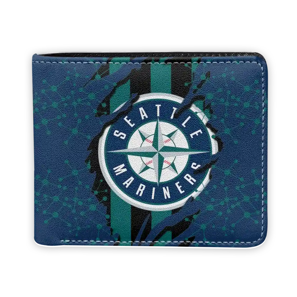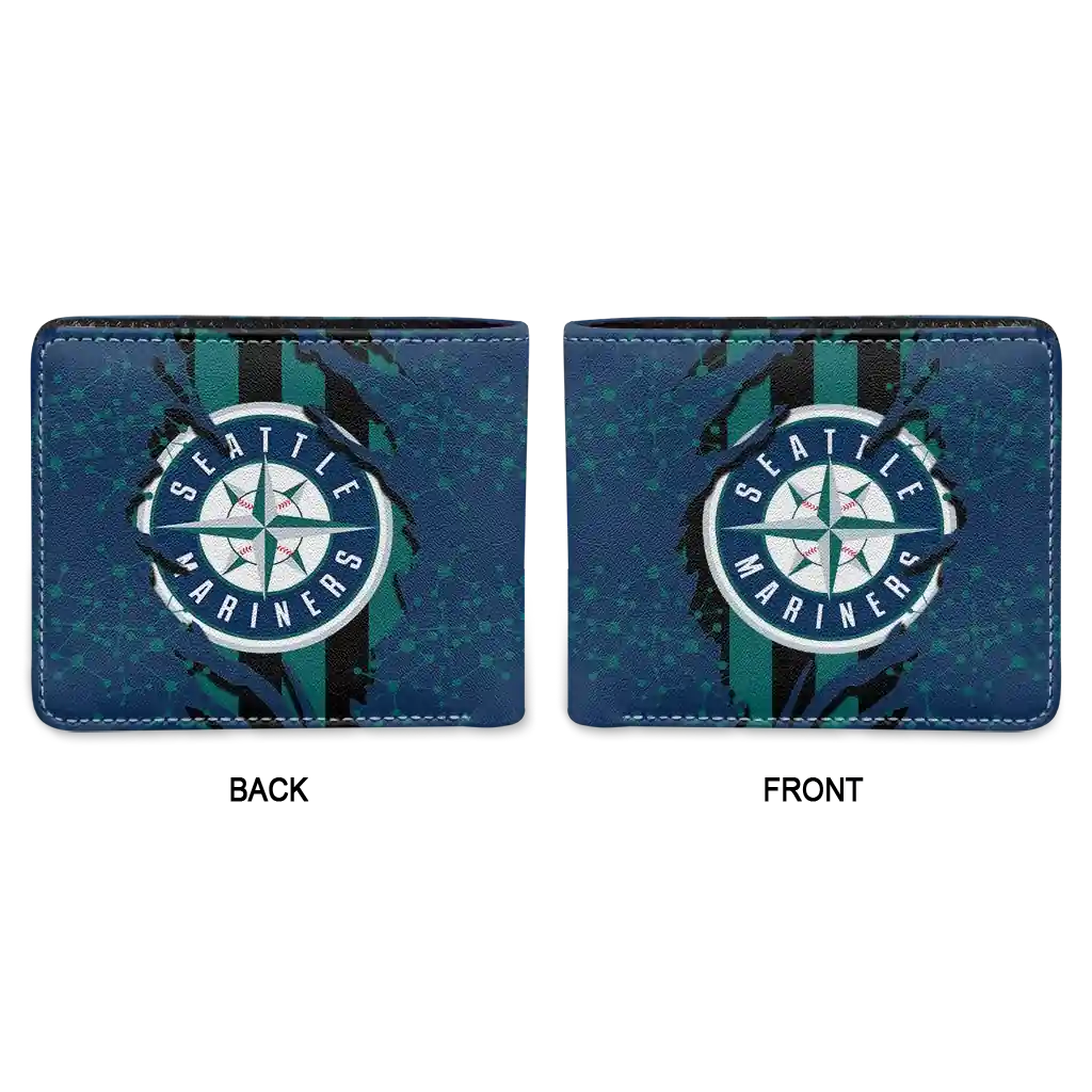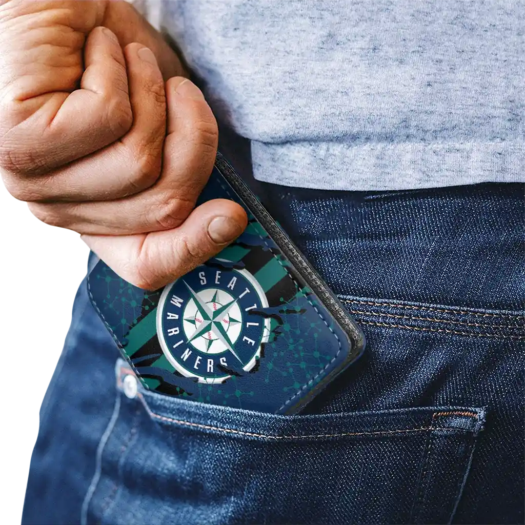 Hit a home run with Seattle Mariners by wearing the Seattle Mariners Torn Stripe Chaos Navy Blue Black Wallet. Featuring a bold team design and crafted with premium materials, this durable sports wallet offers plenty of space for your cards, cash, and game-day essentials. With a secure fold-over closure, it’s the perfect accessory for any die-hard fan ready to rep their team, from the dugout to the streets.