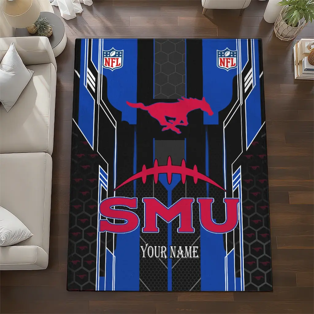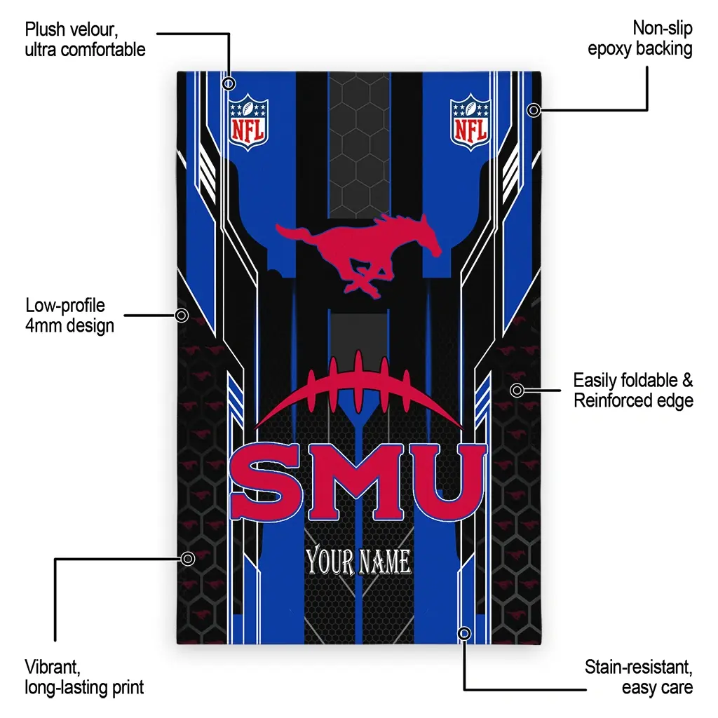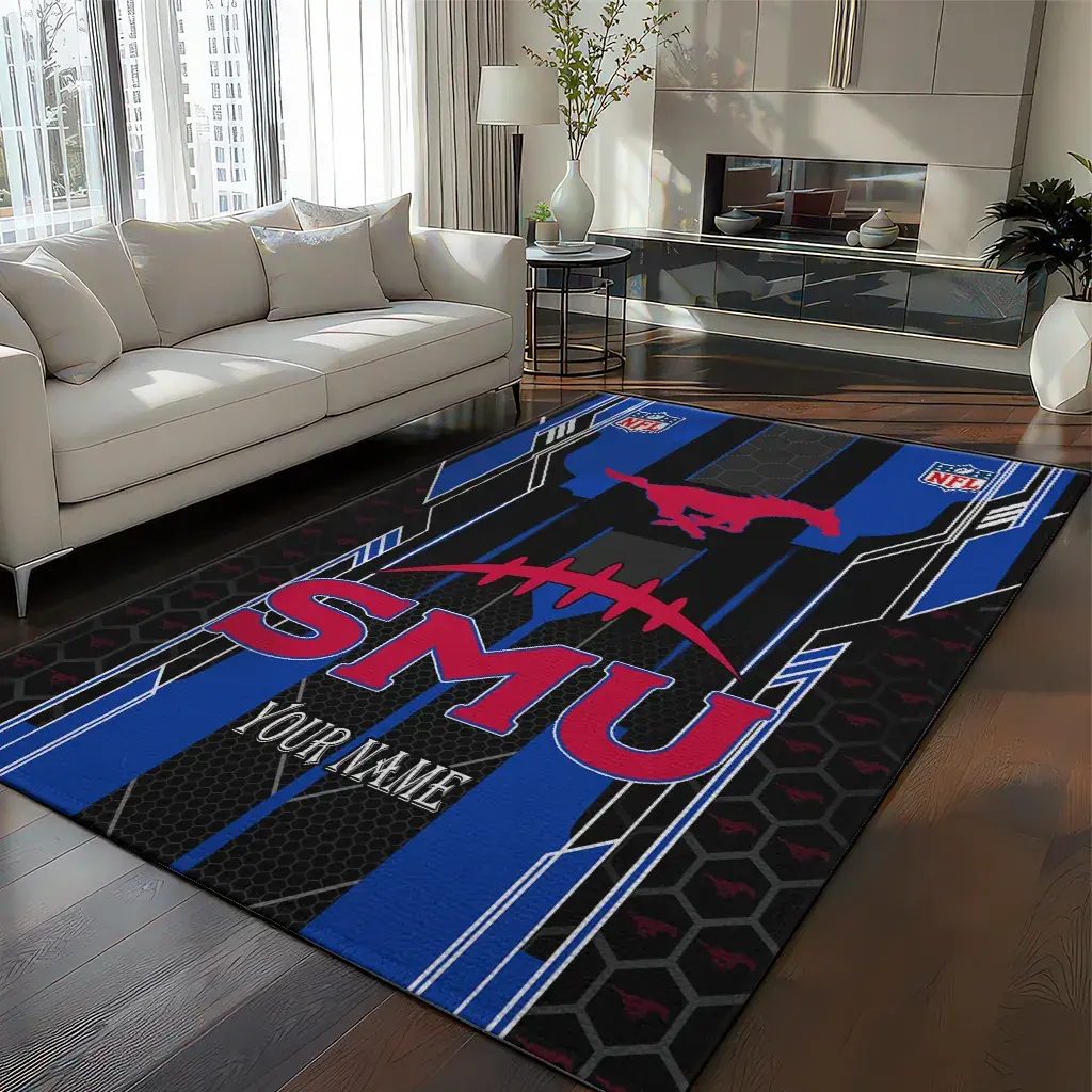 Hit a home run with your favorite team by displaying the SMU Mustangs Rug – Custom Football Laces Blue from MLB Fan Zone. Featuring a bold team design and crafted with plush velour, this durable sports rug offers ultimate comfort for your home or game-day fan cave. With a quality non-slip grip and stay-flat design, it’s the perfect accessory for any die-hard fan ready to rep their team from the living room to the clubhouse.