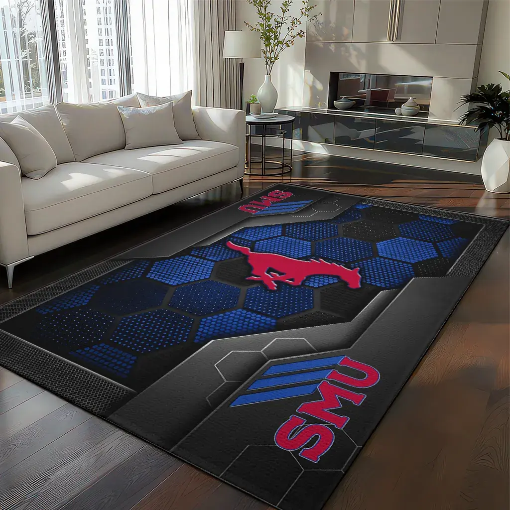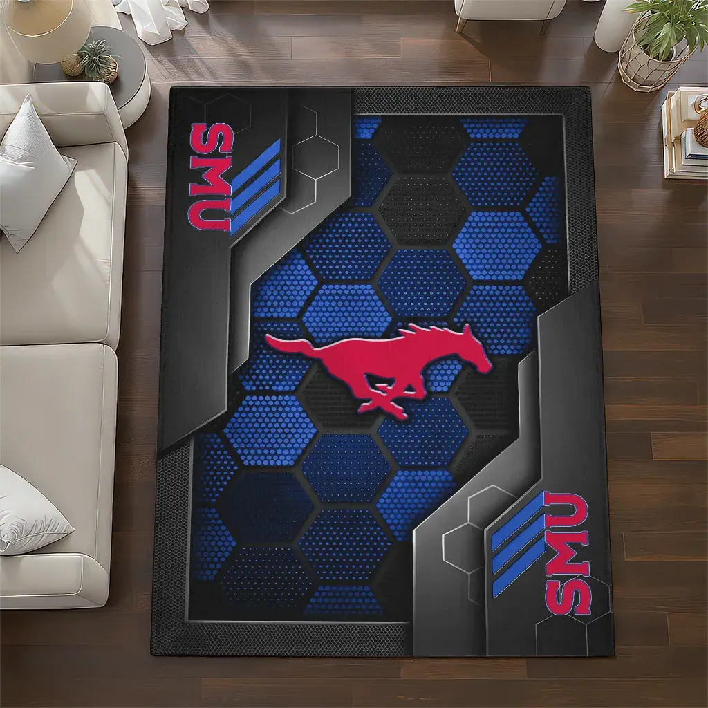 SMU Mustangs Rug – Hexagonal Grid Pattern Blue