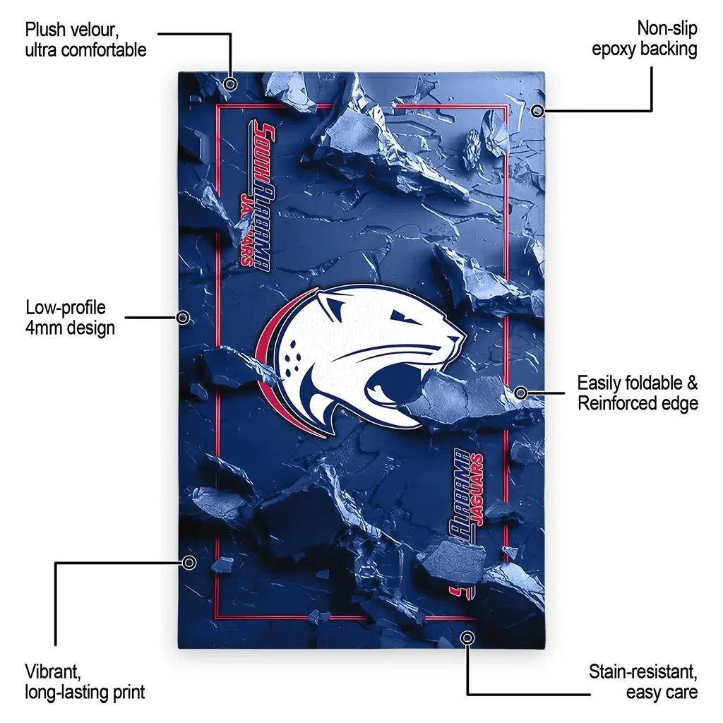 South Alabama Jaguars Rug – Cracked Surface Design Blue