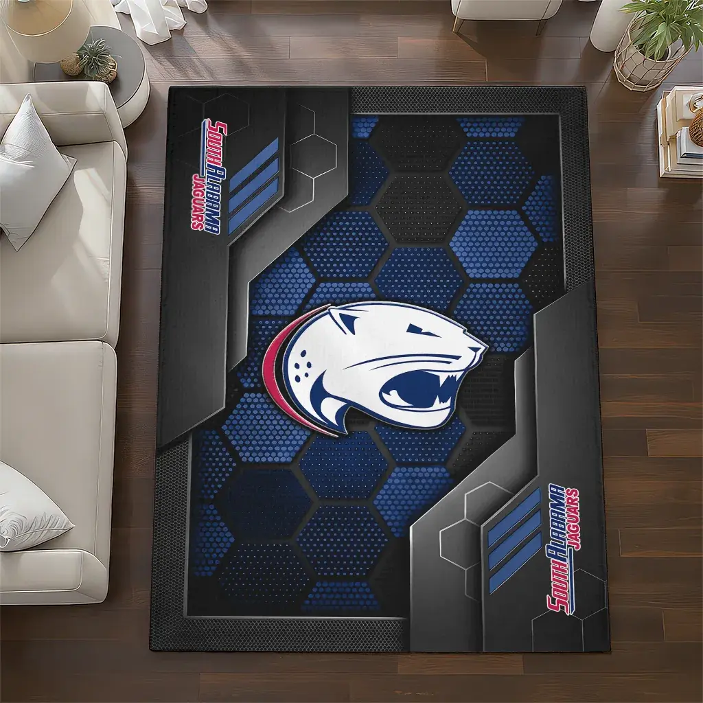 South Alabama Jaguars Rug – Hexagonal Grid Pattern Blue