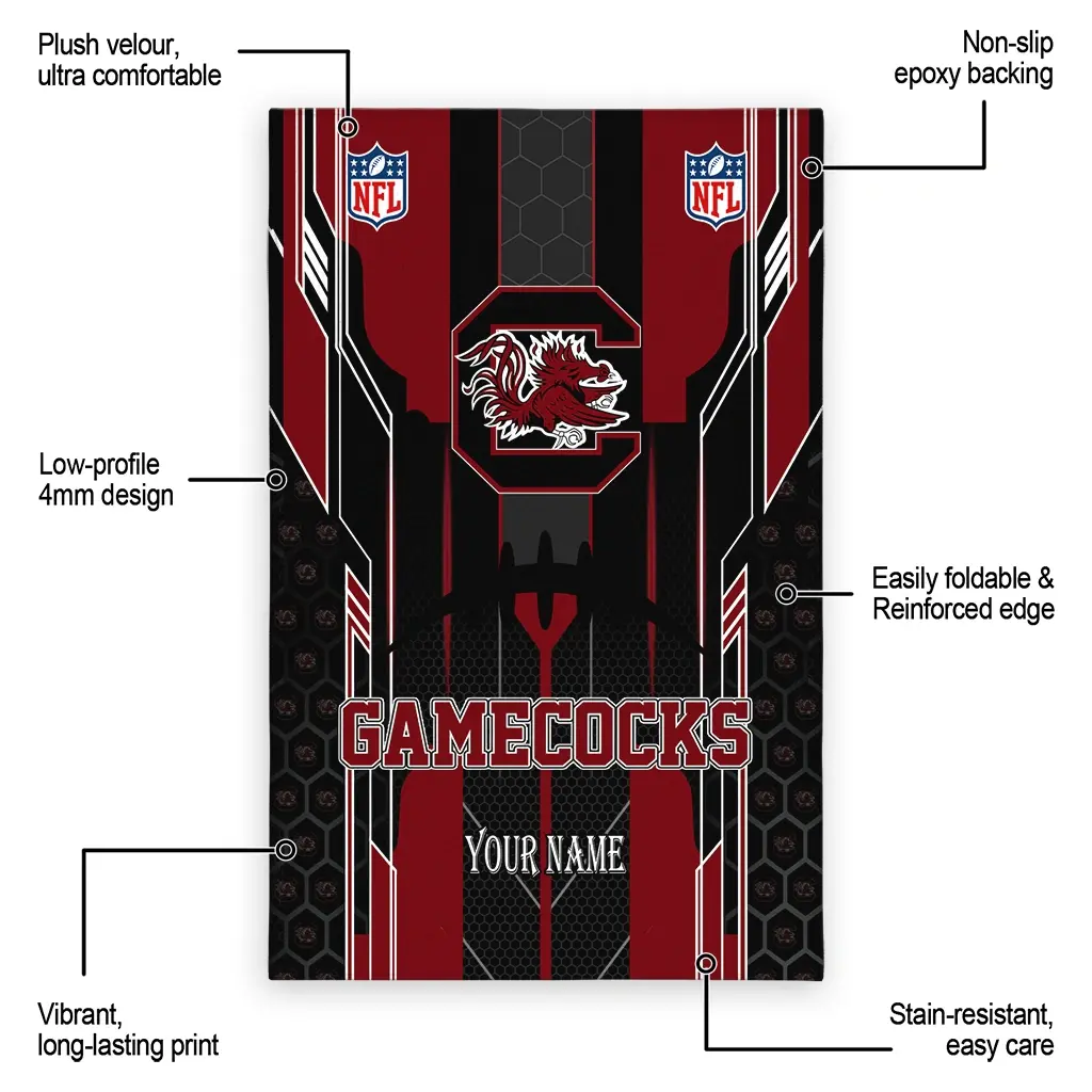 Hit a home run with your favorite team by displaying the South Carolina Gamecocks Rug – Custom Football Laces Garnet from MLB Fan Zone. Featuring a bold team design and crafted with plush velour, this durable sports rug offers ultimate comfort for your home or game-day fan cave. With a quality non-slip grip and stay-flat design, it’s the perfect accessory for any die-hard fan ready to rep their team from the living room to the clubhouse.