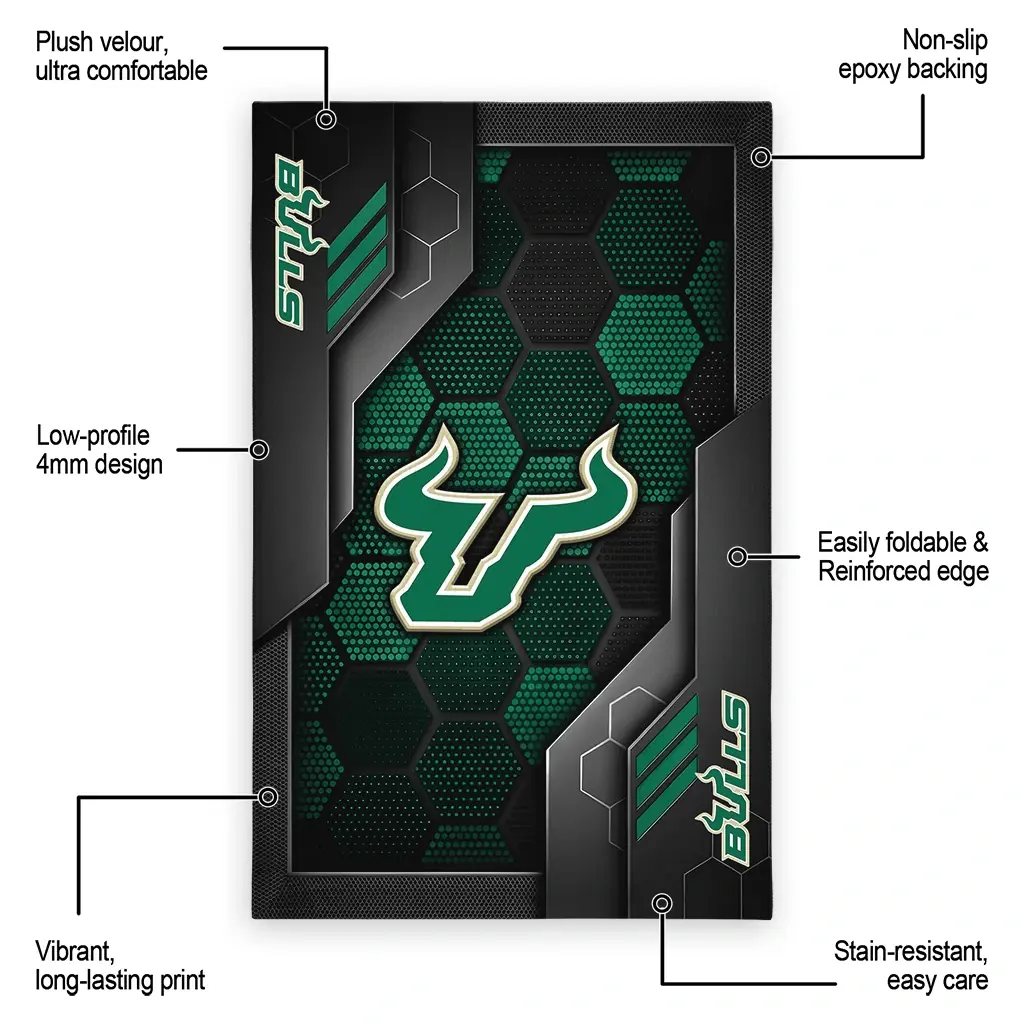 South Florida Bulls Rug – Hexagonal Grid Pattern Green