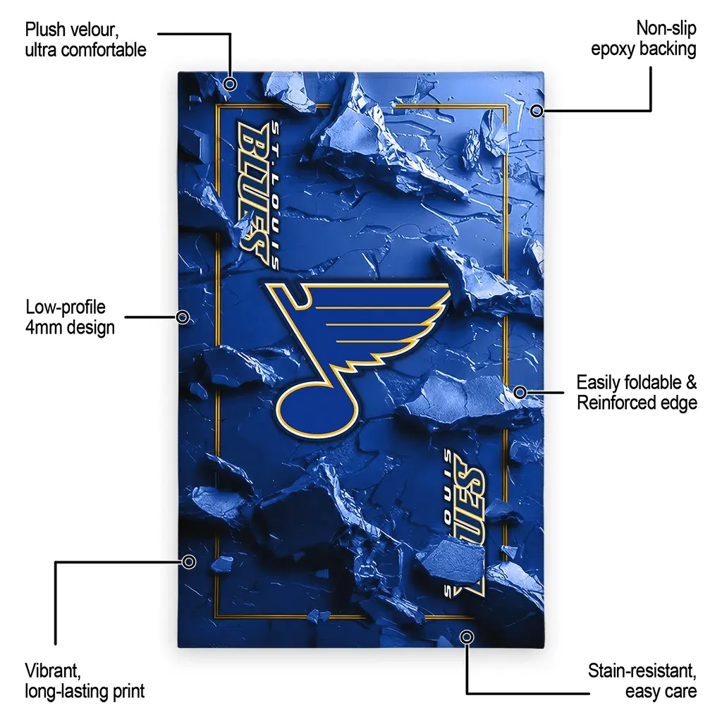 Hit a home run with your favorite team by displaying the St. Louis Blues Rug – Personalized Cracked Surface Design Blue from MLB Fan Zone. Featuring a bold team design and crafted with plush velour, this durable sports rug offers ultimate comfort for your home or game-day fan cave. With a quality non-slip grip and stay-flat design, it’s the perfect accessory for any die-hard fan ready to rep their team from the living room to the clubhouse.
