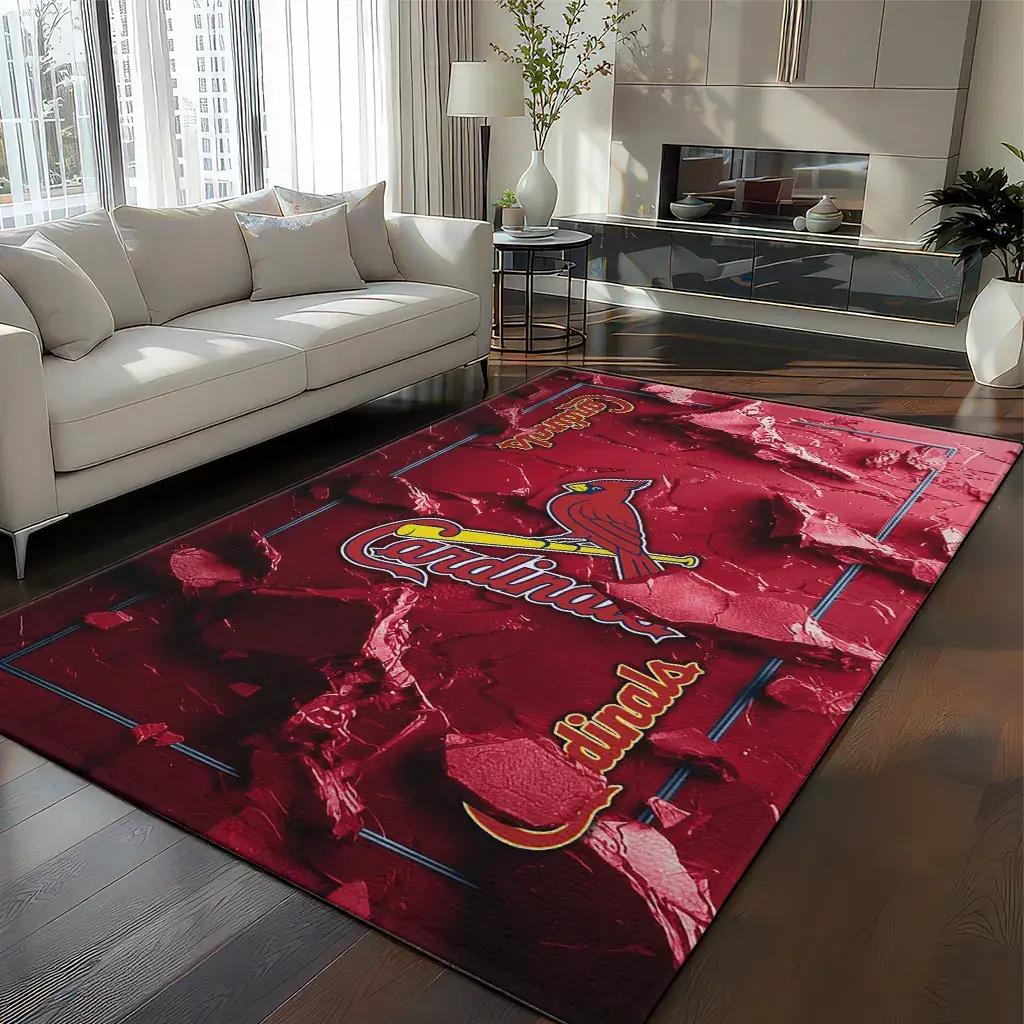 St. Louis Cardinals Rug – Cracked Surface Design Red