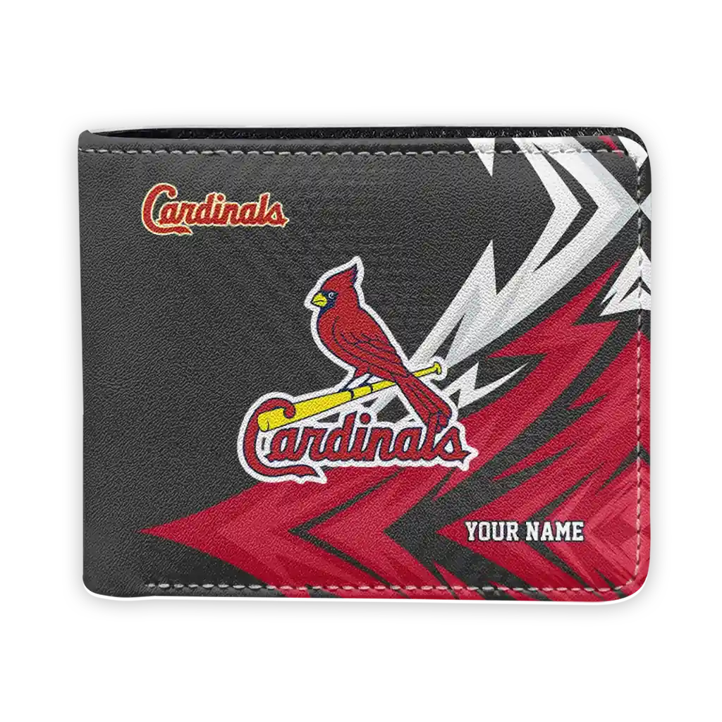 Hit a home run with St. Louis Cardinals by wearing the Custom St. Louis Cardinals Sharp Arrow Streaks Red Black Wallet. Featuring a bold team design and crafted with premium materials, this durable sports wallet offers plenty of space for your cards, cash, and game-day essentials. With a secure fold-over closure, it’s the perfect accessory for any die-hard fan ready to rep their team, from the dugout to the streets.