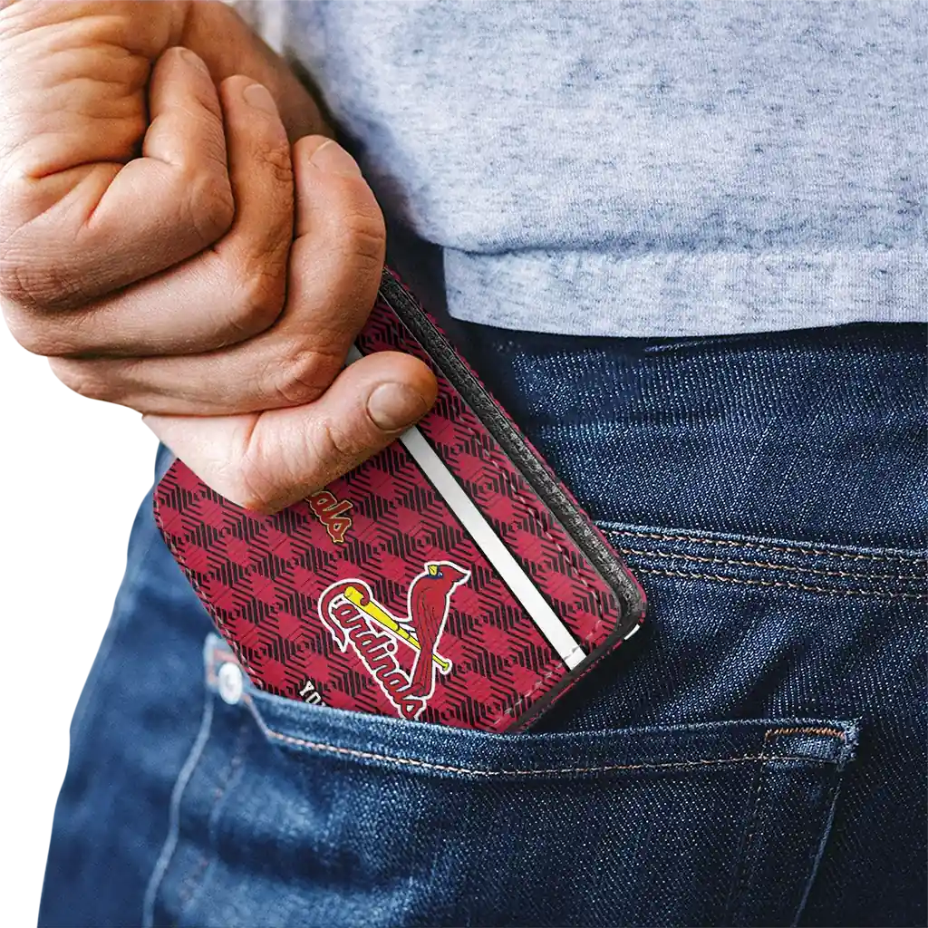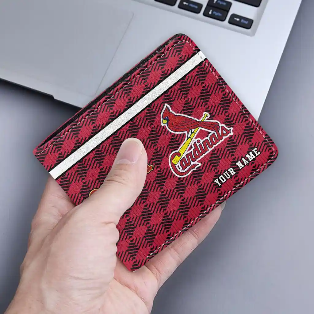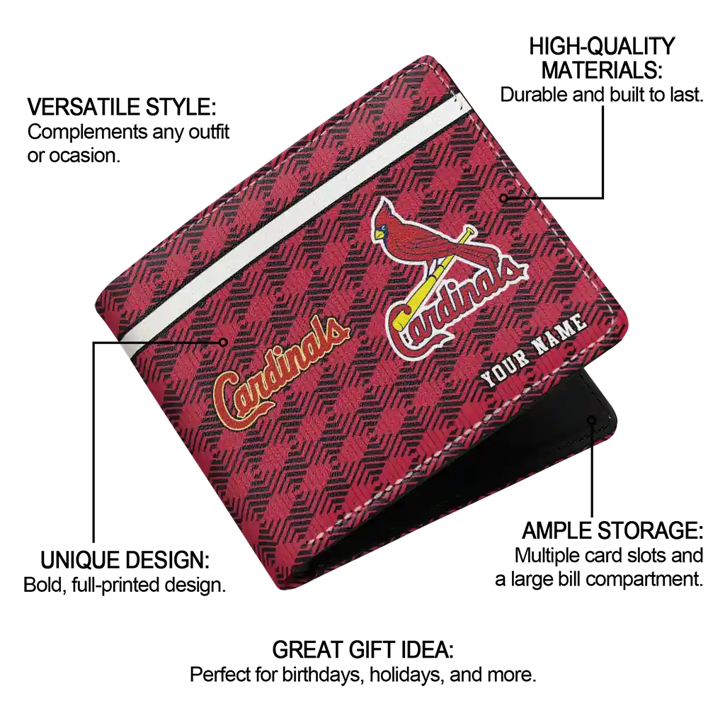 Hit a home run with St. Louis Cardinals by wearing the Personalized St. Louis Cardinals Cube Illusion Red Wallet. Featuring a bold team design and crafted with premium materials, this durable sports wallet offers plenty of space for your cards, cash, and game-day essentials. With a secure fold-over closure, it’s the perfect accessory for any die-hard fan ready to rep their team, from the dugout to the streets.