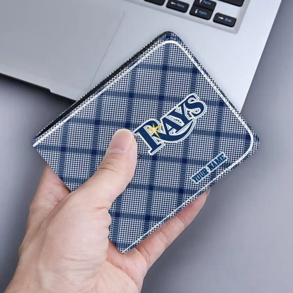Hit a home run with Tampa Bay Rays by wearing the Custom Tampa Bay Rays Plaid Grid Navy Wallet. Featuring a bold team design and crafted with premium materials, this durable sports wallet offers plenty of space for your cards, cash, and game-day essentials. With a secure fold-over closure, it’s the perfect accessory for any die-hard fan ready to rep their team, from the dugout to the streets.