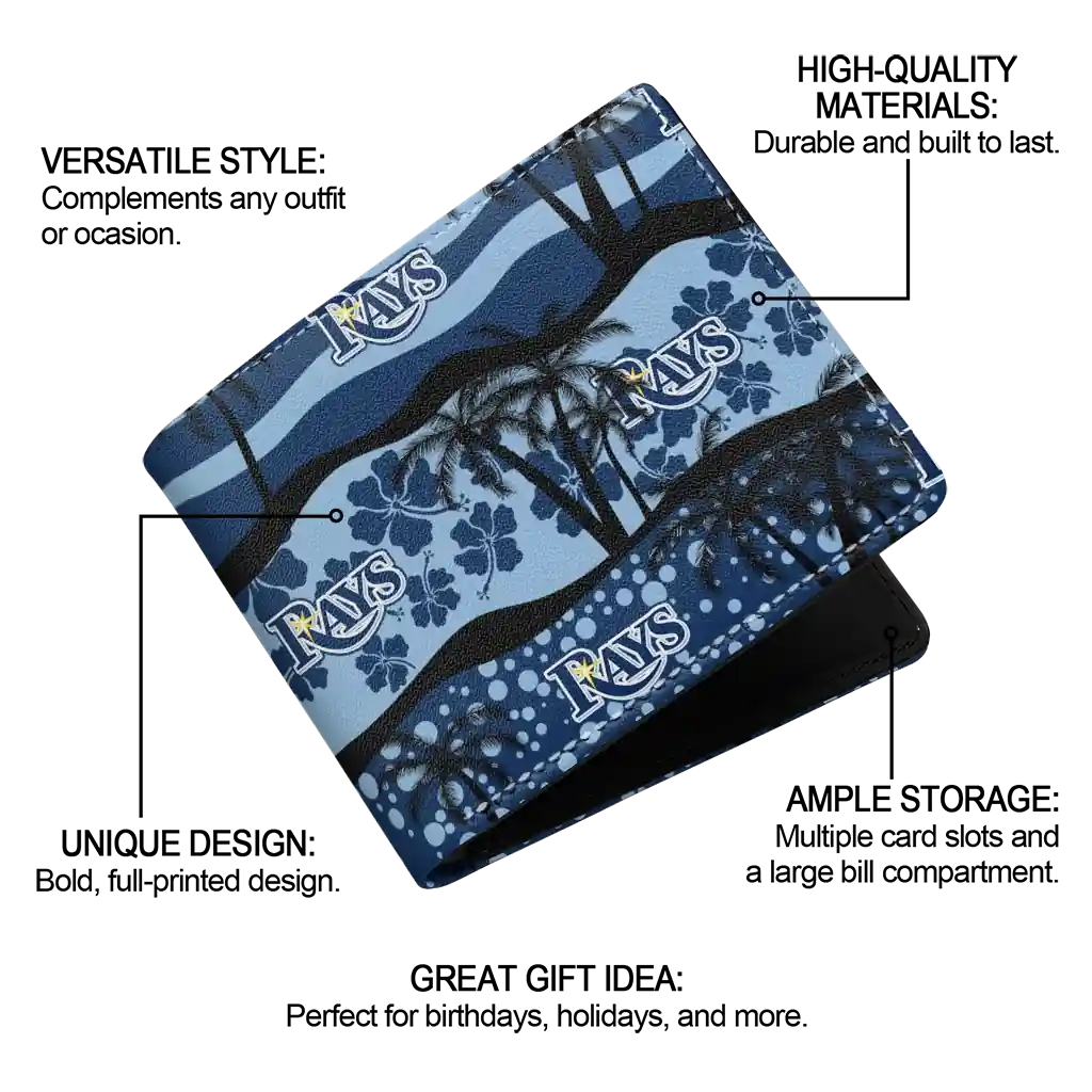 Hit a home run with Tampa Bay Rays by wearing the Tampa Bay Rays Palm Paradise Navy Black Wallet. Featuring a bold team design and crafted with premium materials, this durable sports wallet offers plenty of space for your cards, cash, and game-day essentials. With a secure fold-over closure, it’s the perfect accessory for any die-hard fan ready to rep their team, from the dugout to the streets.