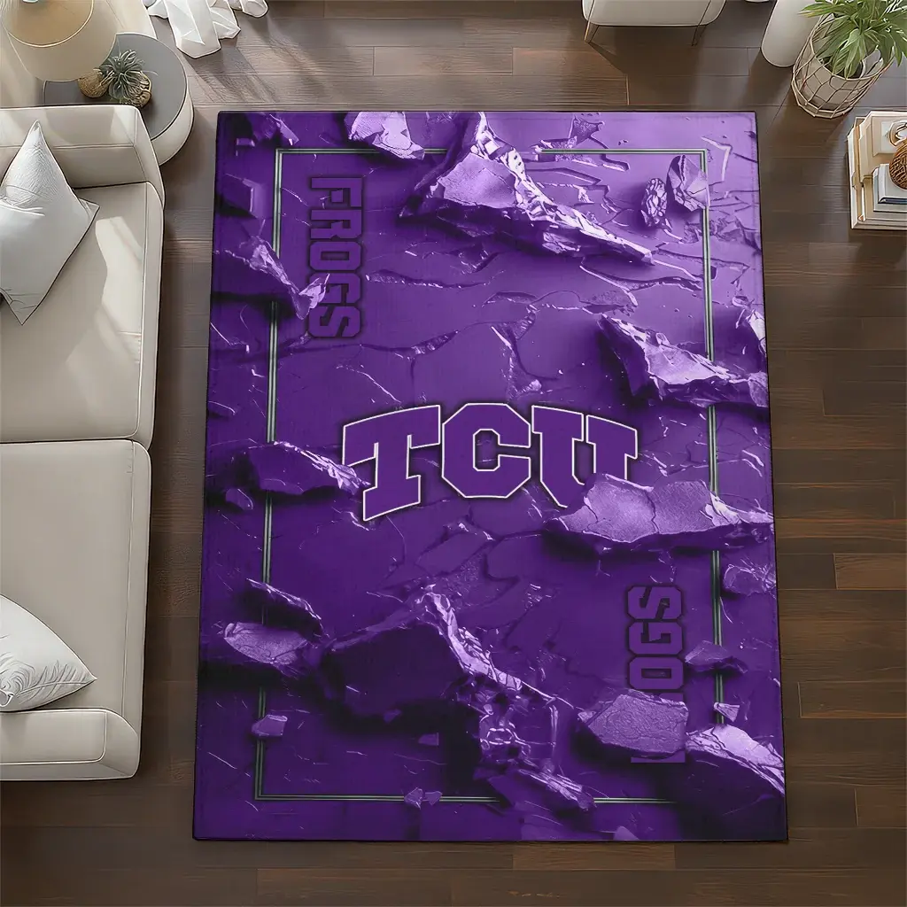 TCU Horned Frogs Rug – Cracked Surface Design Purple