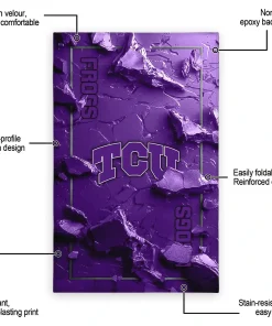 Hit a home run with your favorite team by displaying the TCU Horned Frogs Rug – Personalized Cracked Surface Design Purple from MLB Fan Zone. Featuring a bold team design and crafted with plush velour, this durable sports rug offers ultimate comfort for your home or game-day fan cave. With a quality non-slip grip and stay-flat design, it’s the perfect accessory for any die-hard fan ready to rep their team from the living room to the clubhouse.