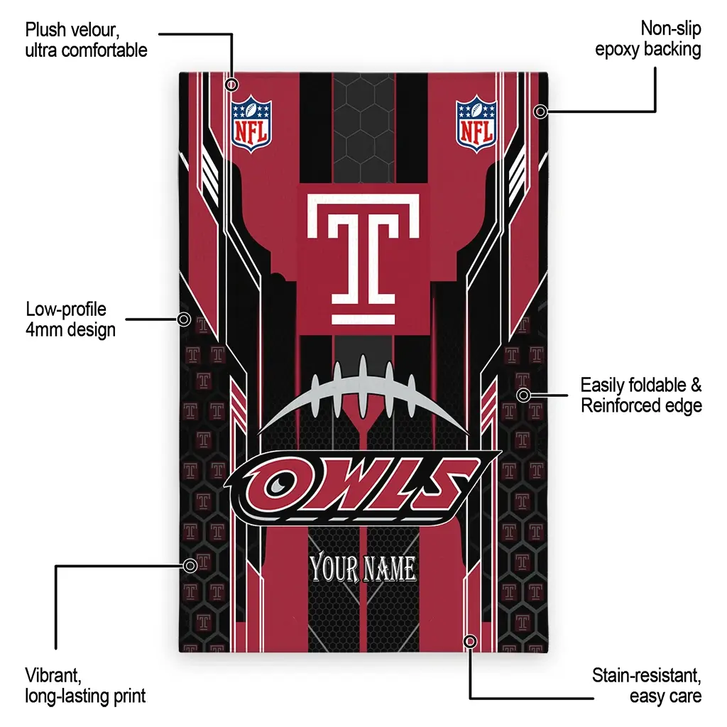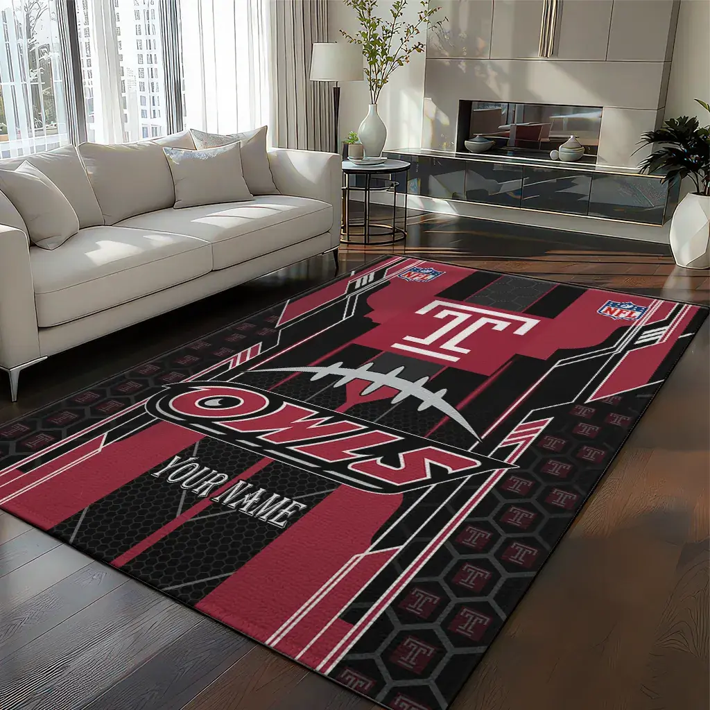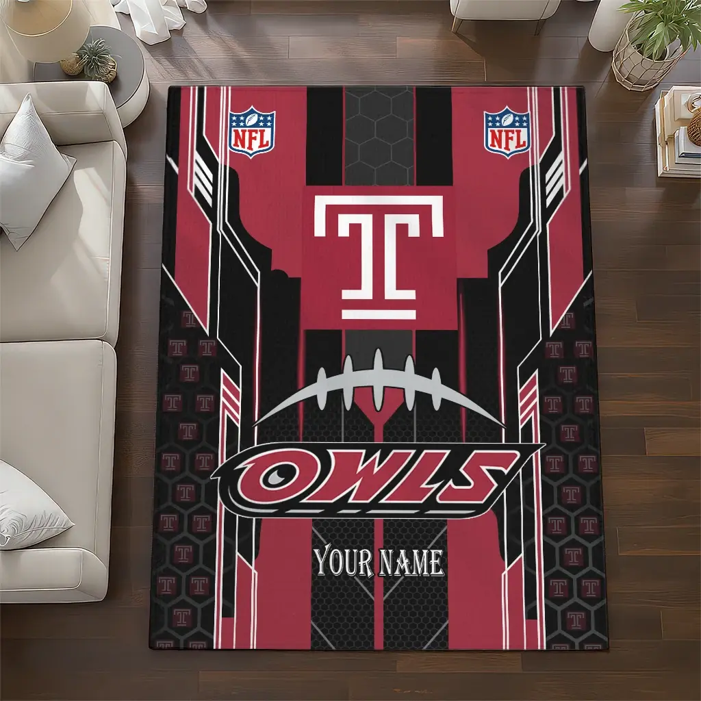 Temple Owls Rug – Customized Football Laces Red