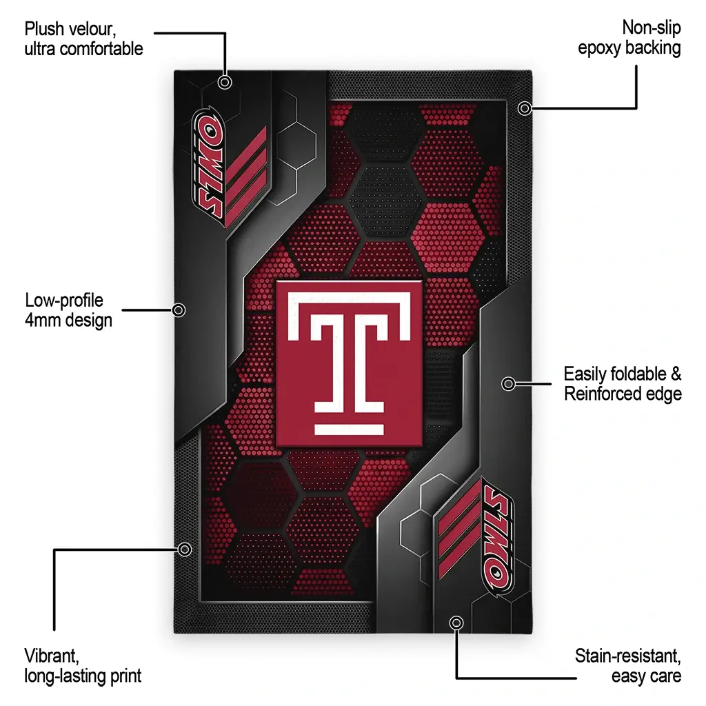 Hit a home run with your favorite team by displaying the Temple Owls Rug – Customized Hexagonal Grid Pattern Red from MLB Fan Zone. Featuring a bold team design and crafted with plush velour, this durable sports rug offers ultimate comfort for your home or game-day fan cave. With a quality non-slip grip and stay-flat design, it’s the perfect accessory for any die-hard fan ready to rep their team from the living room to the clubhouse.