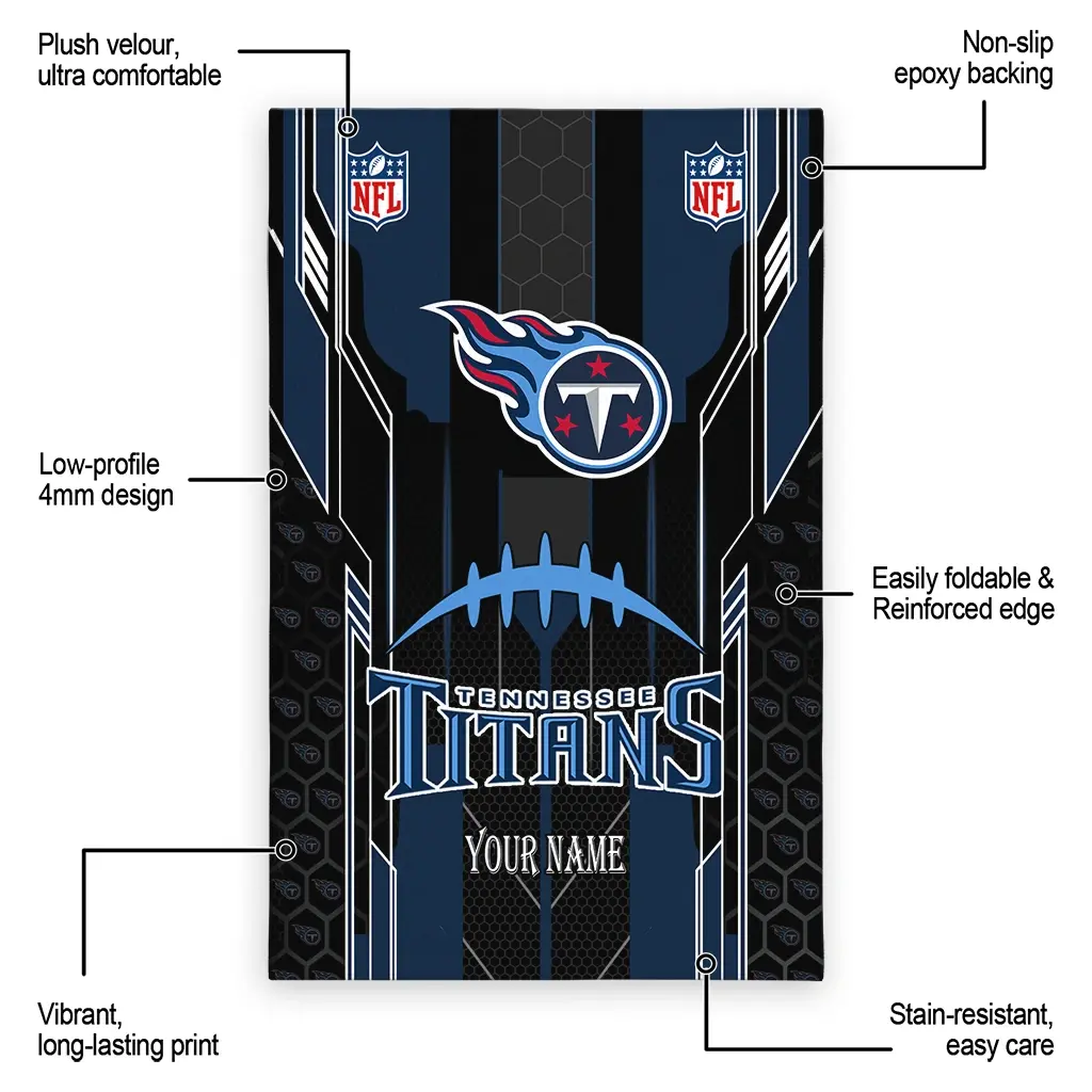 Hit a home run with your favorite team by displaying the Tennessee Titans Rug – Customized Football Laces Navy from MLB Fan Zone. Featuring a bold team design and crafted with plush velour, this durable sports rug offers ultimate comfort for your home or game-day fan cave. With a quality non-slip grip and stay-flat design, it’s the perfect accessory for any die-hard fan ready to rep their team from the living room to the clubhouse.