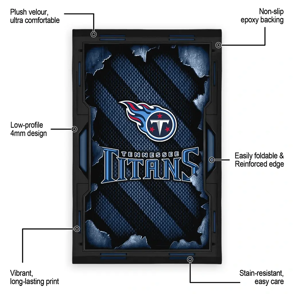 Hit a home run with your favorite team by displaying the Tennessee Titans Rug – Custom Torn Mesh Navy from MLB Fan Zone. Featuring a bold team design and crafted with plush velour, this durable sports rug offers ultimate comfort for your home or game-day fan cave. With a quality non-slip grip and stay-flat design, it’s the perfect accessory for any die-hard fan ready to rep their team from the living room to the clubhouse.