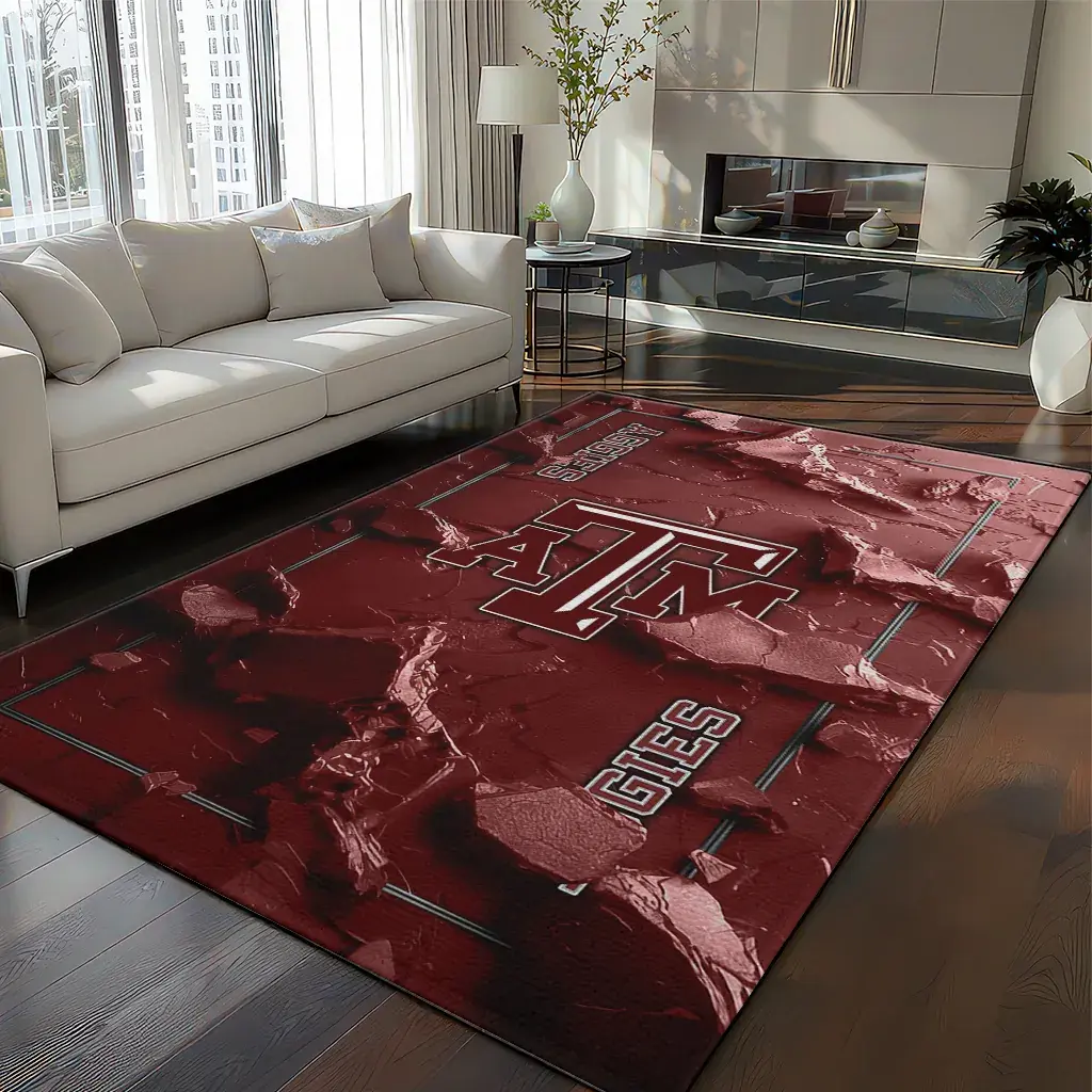 Texas A&M Aggies Rug – Cracked Surface Design Maroon