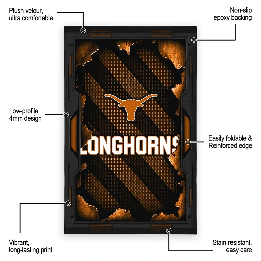 Hit a home run with your favorite team by displaying the Texas Longhorns Rug – Custom Torn Mesh Orange from MLB Fan Zone. Featuring a bold team design and crafted with plush velour, this durable sports rug offers ultimate comfort for your home or game-day fan cave. With a quality non-slip grip and stay-flat design, it’s the perfect accessory for any die-hard fan ready to rep their team from the living room to the clubhouse.